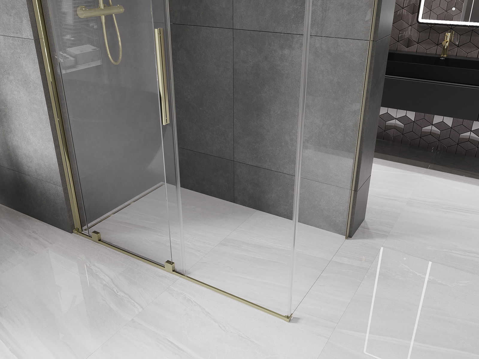 Die Versiegelungsschwelle bietet einen effektiven Schutz vor Wasserabfluss außerhalb der Dusche und schützt das Badezimmer vor Überschwemmungen. Dank Aluminium ist die Versiegelungsschwelle korrosionsbeständige und mechanische Schäden.