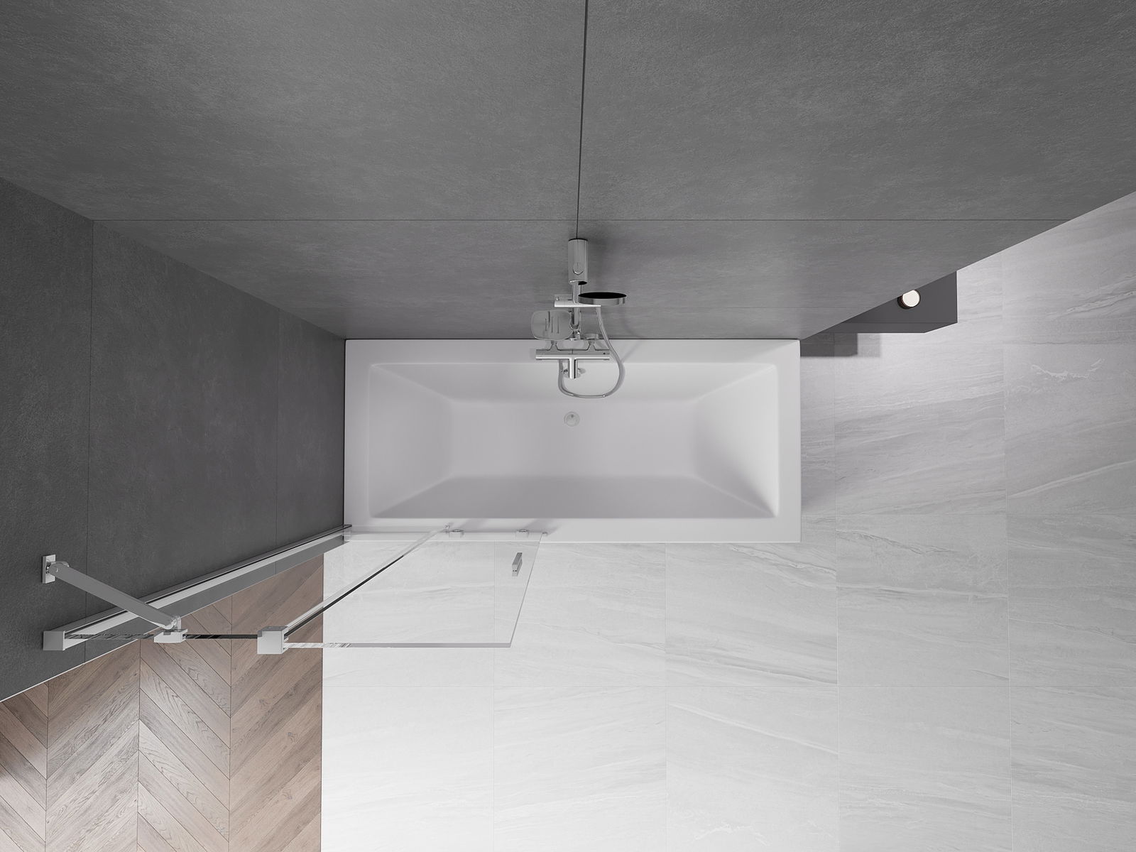 Effektiver Schutz gegen Wasser beim Baden. Der Bildschirm hat Dichtungen, die sich perfekt an das Glas des Glass und an der Badewanne der Badewanne anpassen. Eine funktionale Lösung, um Sicherheit und einfache Wartung zu gewährleisten.