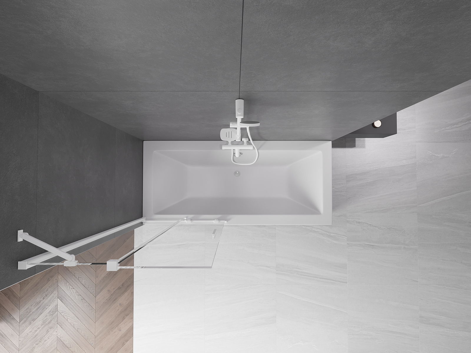 Effektiver Schutz gegen Wasser beim Baden. Der Bildschirm hat Dichtungen, die sich perfekt an das Glas des Glass und an der Badewanne der Badewanne anpassen. Eine funktionale Lösung, um Sicherheit und einfache Wartung zu gewährleisten.