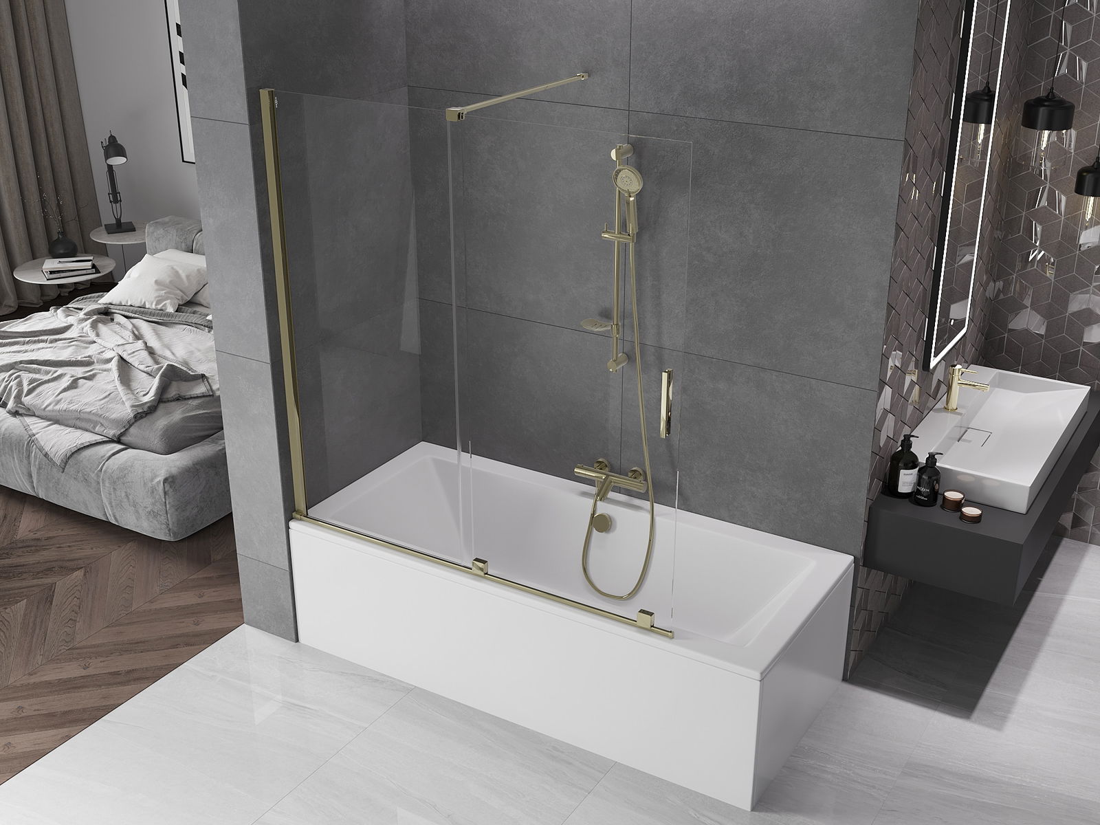 Mexen Velar Badewannen-Paravent, 2-flügelig, schiebbar, 150 x 150 cm, transparent, gold - 896-150-000-01-50