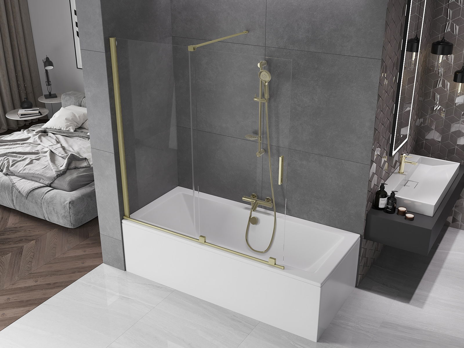 Mexen Velar Duschwand 2-flügelig verschiebbar 150 x 150 cm, transparent, gold gebürstet - 896-150-000-01-55