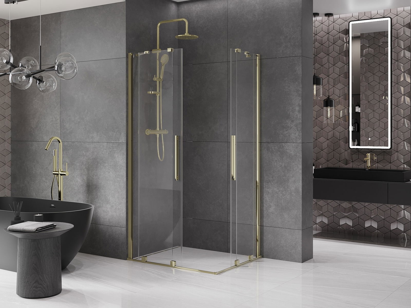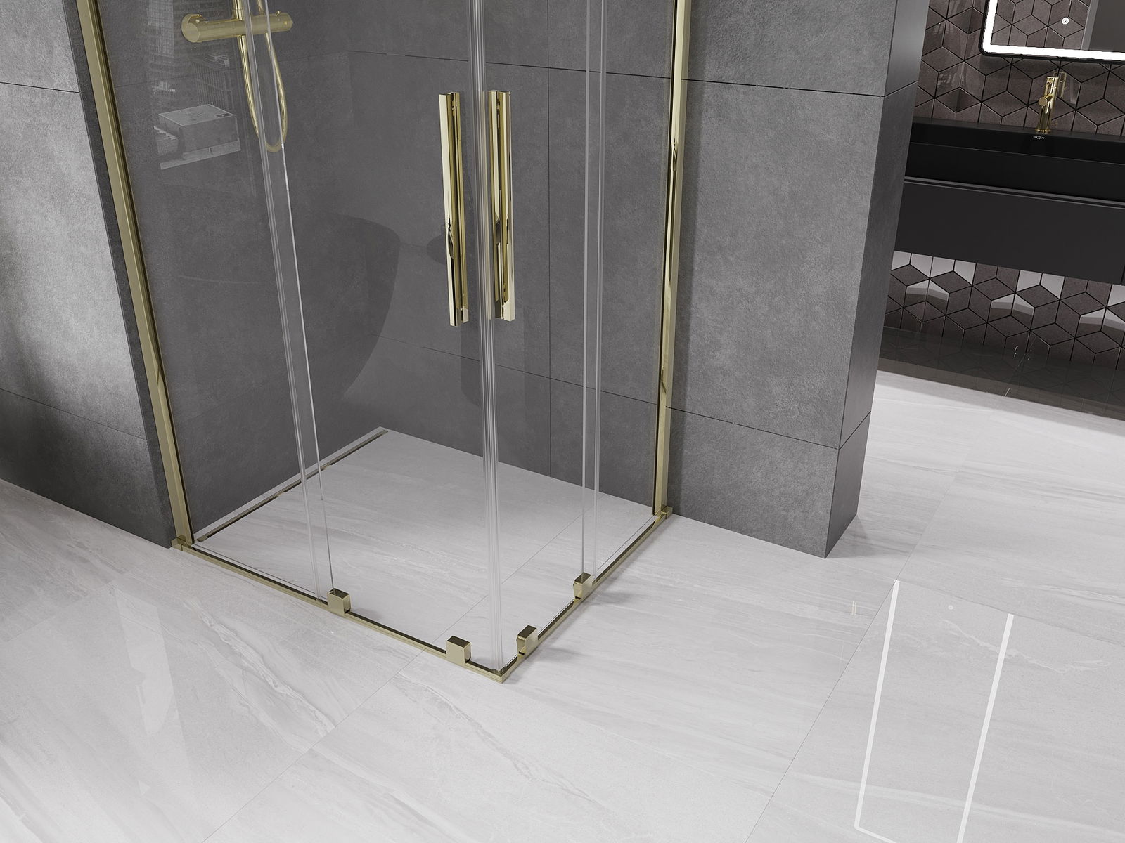 Abhängig von Ihren Bedürfnissen kann das Produkt sowohl auf der Duschschale als auch direkt auf dem Boden montiert werden. Mit der universellen Montagemethode können Sie das Produkt an verschiedene Arten von Badezimmern anpassen und Raum konfigurieren.