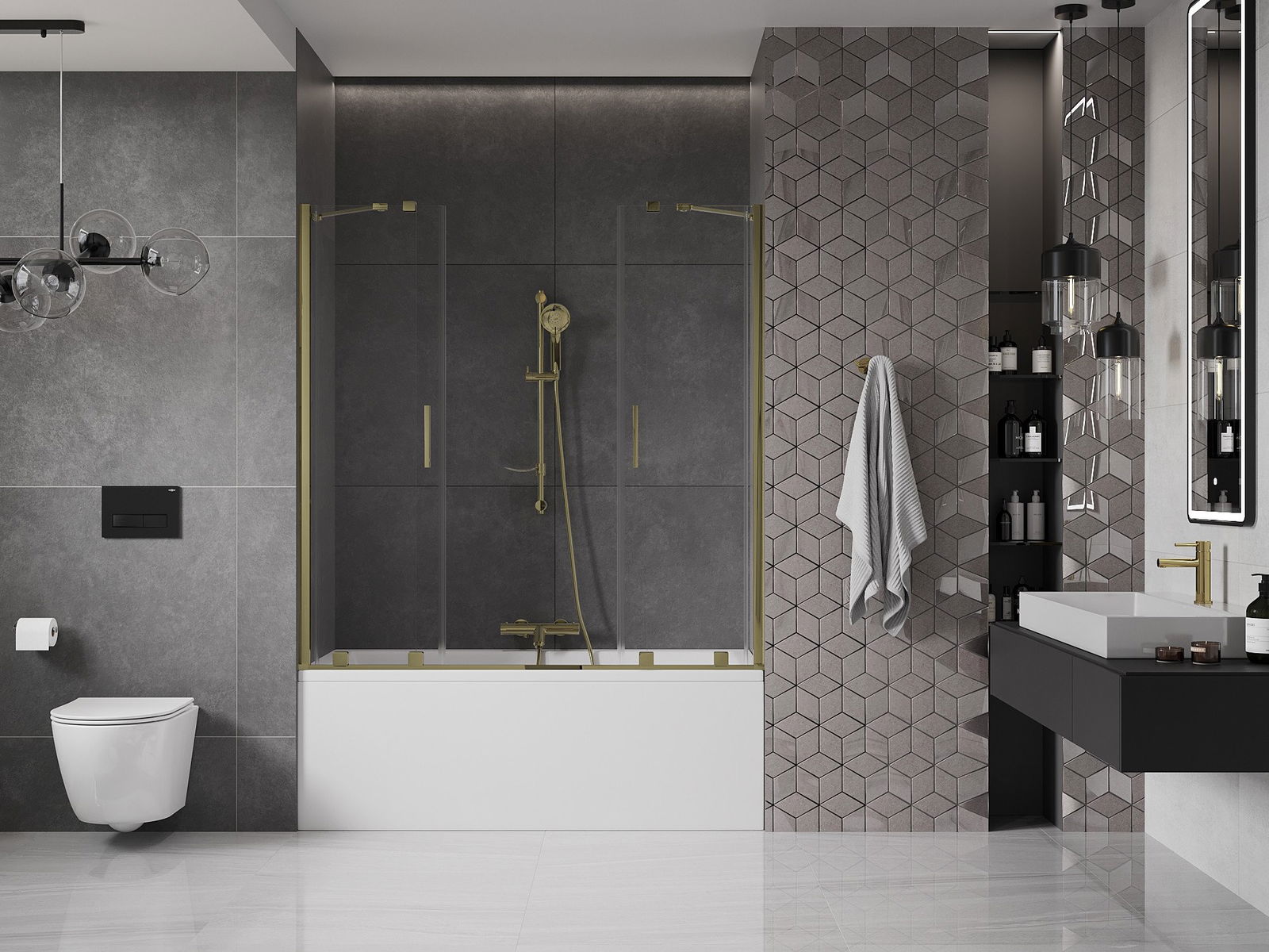 Mexen Velar Duo Badewannenfaltwand 2-flügelig verschiebbar 160 x 150 cm, transparent, golden - 896-160-000-02-50
