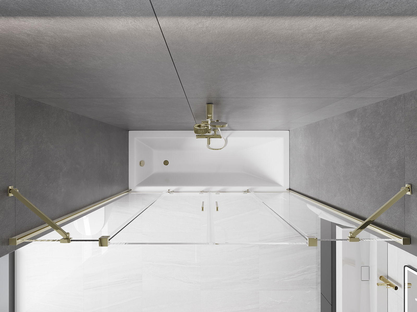 Effektiver Schutz gegen Wasser beim Baden. Der Bildschirm hat Dichtungen, die sich perfekt an das Glas des Glass und an der Badewanne der Badewanne anpassen. Eine funktionale Lösung, um Sicherheit und einfache Wartung zu gewährleisten.