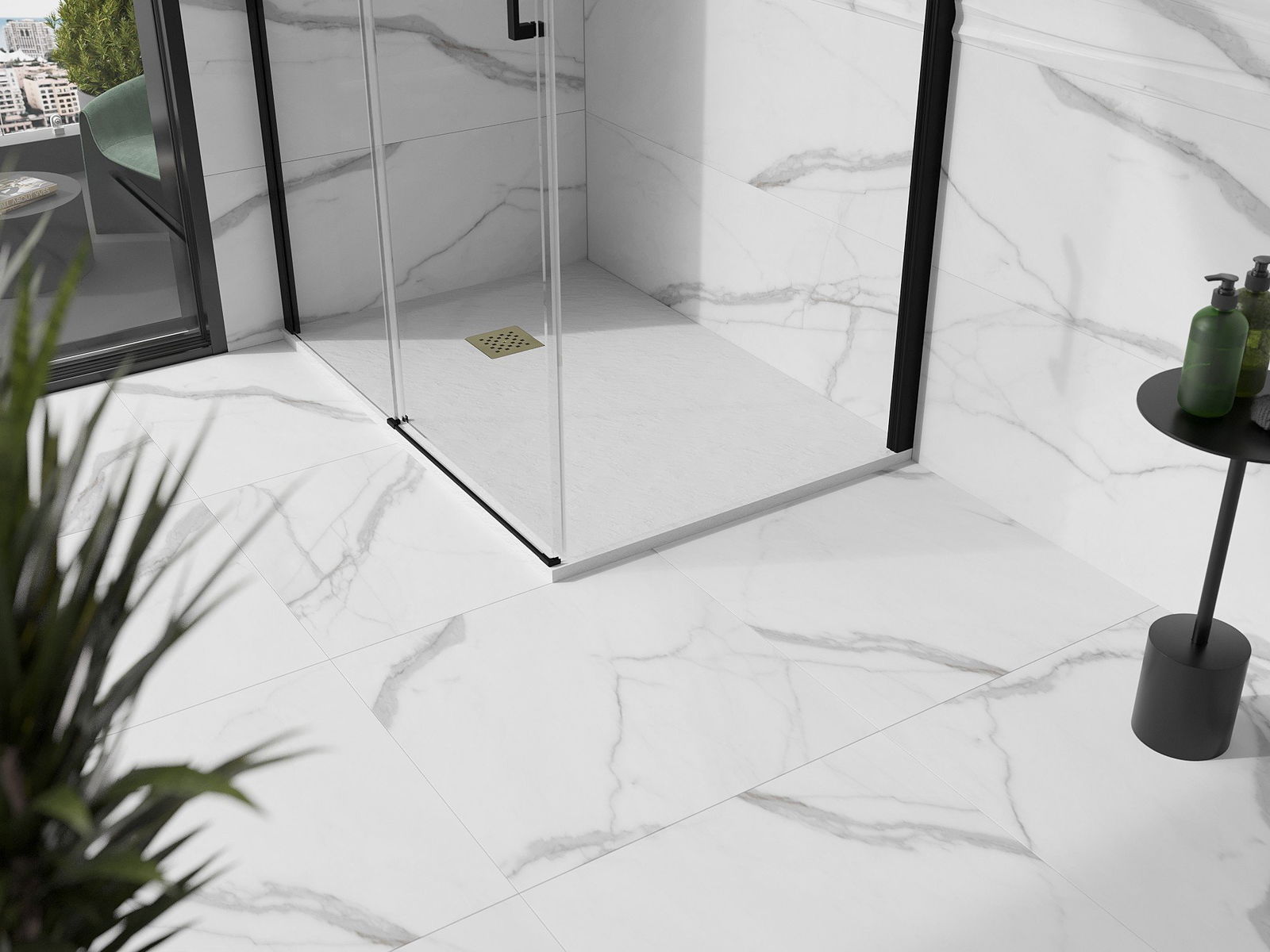 Mexen Stone+ rechteckige Komposit-Duschwanne 140 x 70 cm, weiß, goldene Abdeckung - 44107014-G