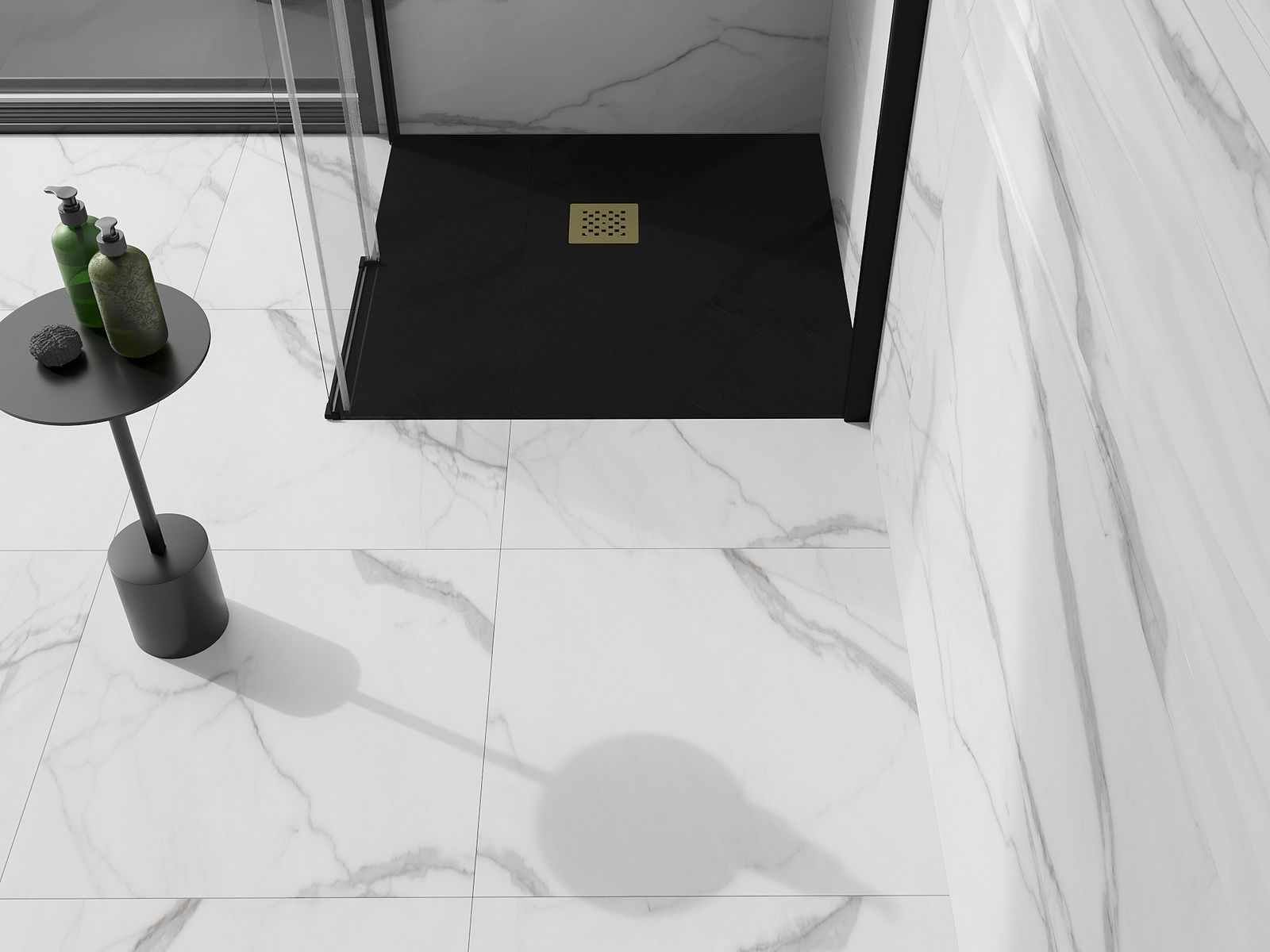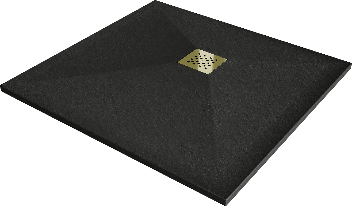 Mexen Stone+ quadratische Duschwanne aus Verbundwerkstoff 70 x 70 cm, schwarz, goldene Abdeckung - 44707070-G