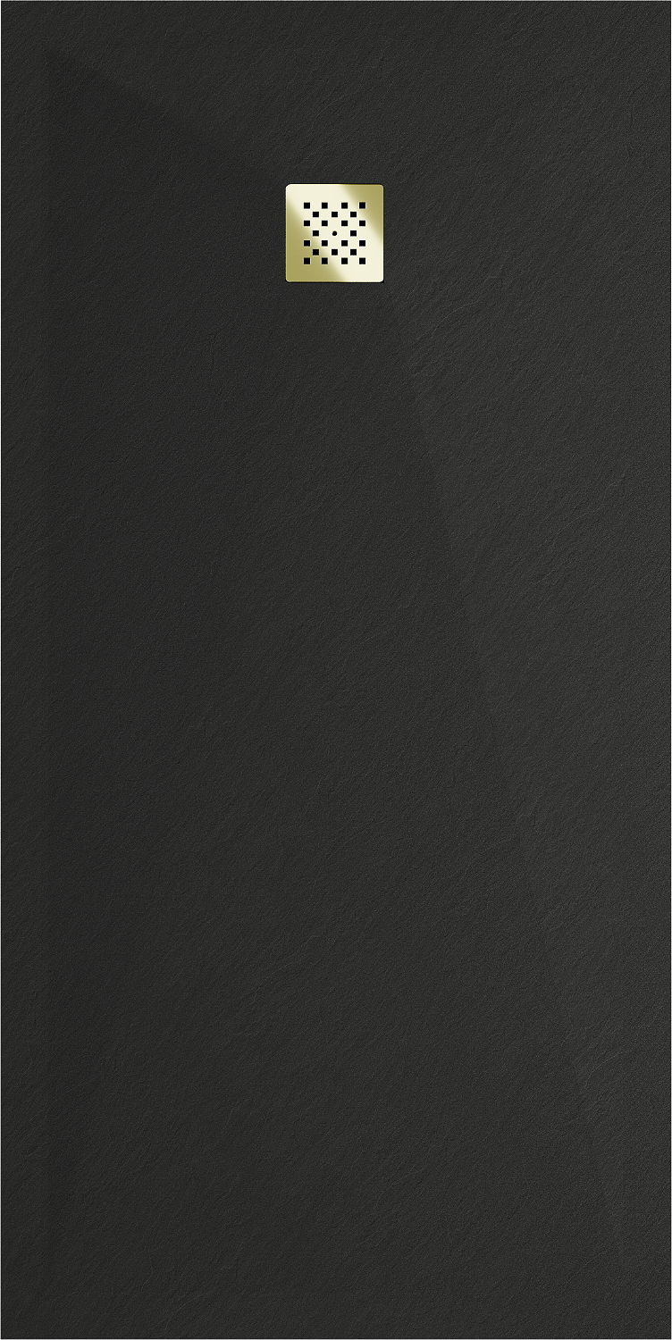 Mexen Stone+ rechteckige Duschwanne aus Verbundstoff 160 x 70 cm, schwarz, goldene Abdeckung - 44707016-G