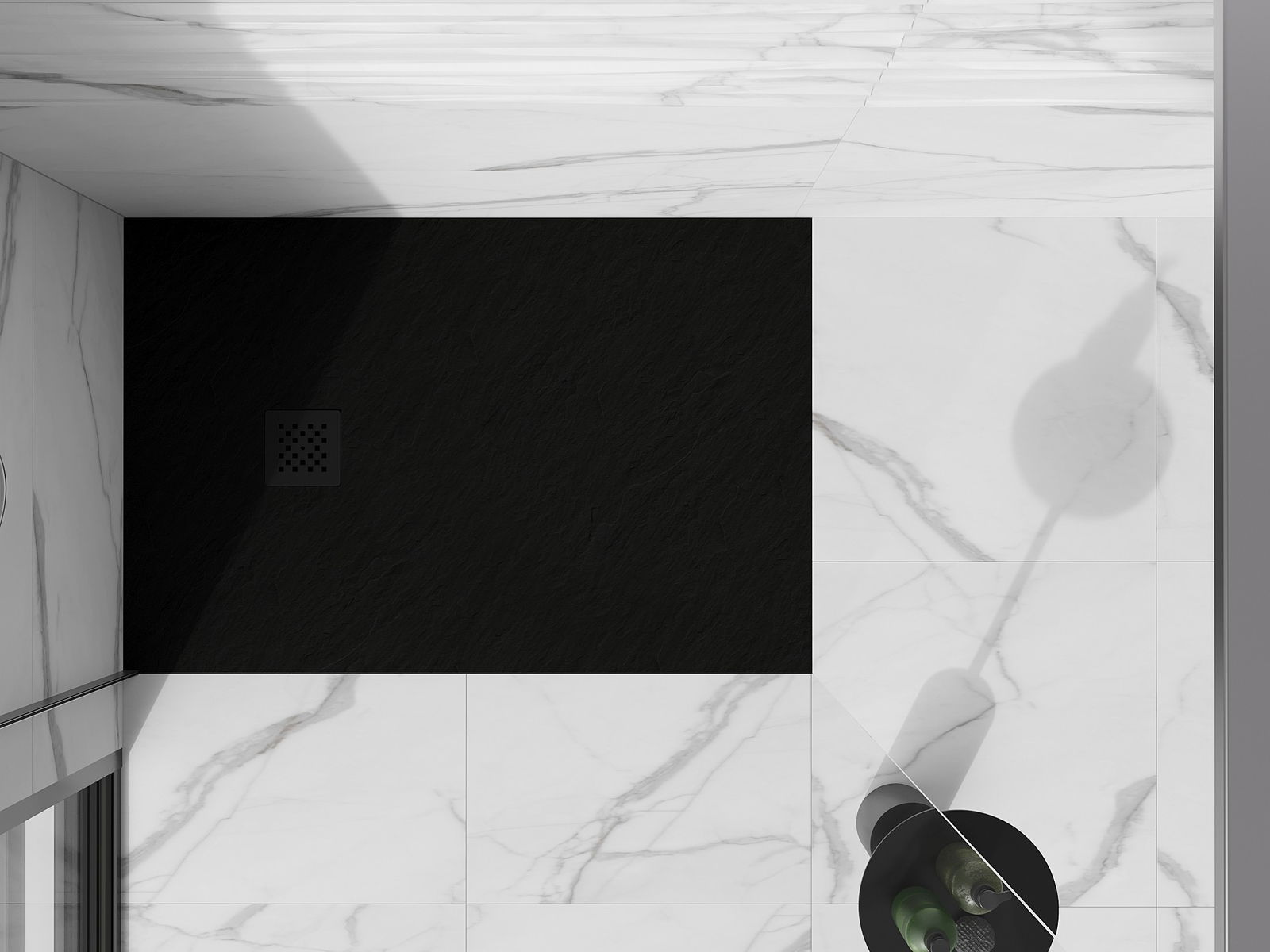 Mexen Stone+ rechteckige Duschwanne aus Verbundwerkstoff 120 x 100 cm, schwarz, schwarze Abdeckung - 44701012-B