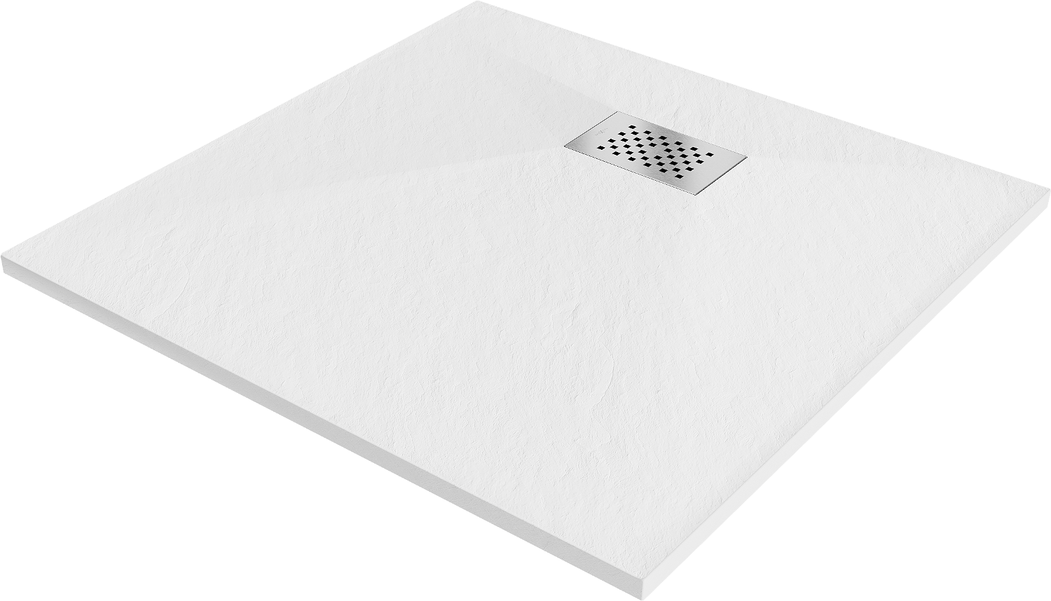 Mexen Hugo quadratische Duschwanne SMC 70 x 70 cm, weiß, Abdeckung Inox - 42107070-X