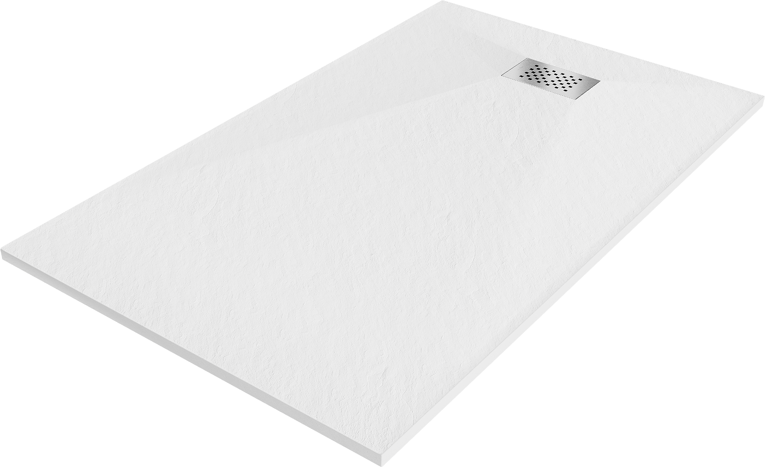 Mexen Hugo rechteckige Duschwanne SMC 140 x 70 cm, weiß, Abdeckung inox - 42107014-X