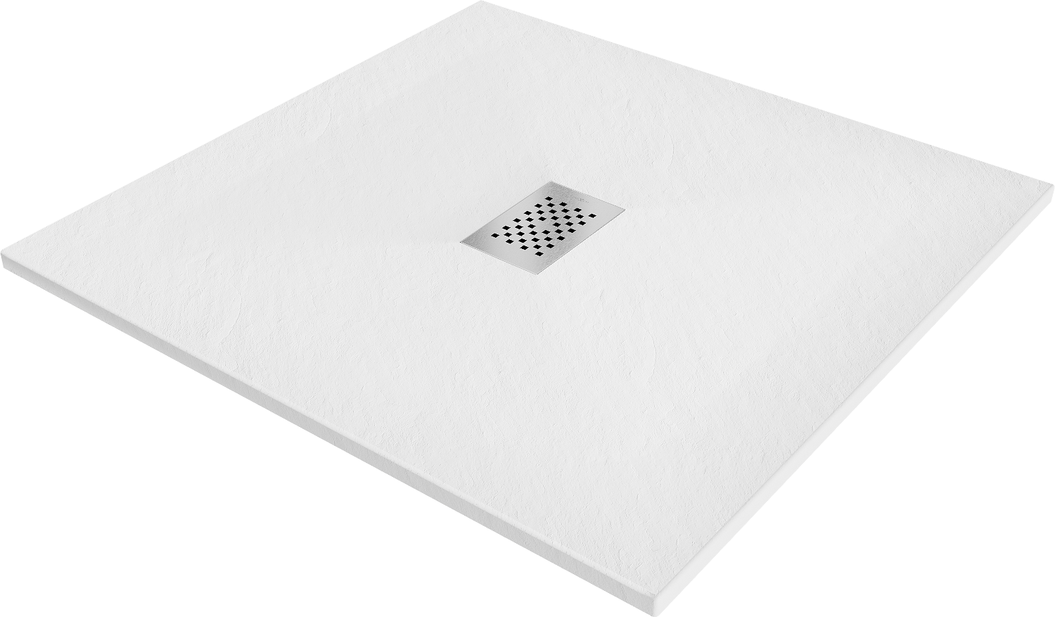 Mexen Hugo quadratische Duschwanne SMC 100 x 100 cm, weiß, Abdeckung Inox - 42101010-X