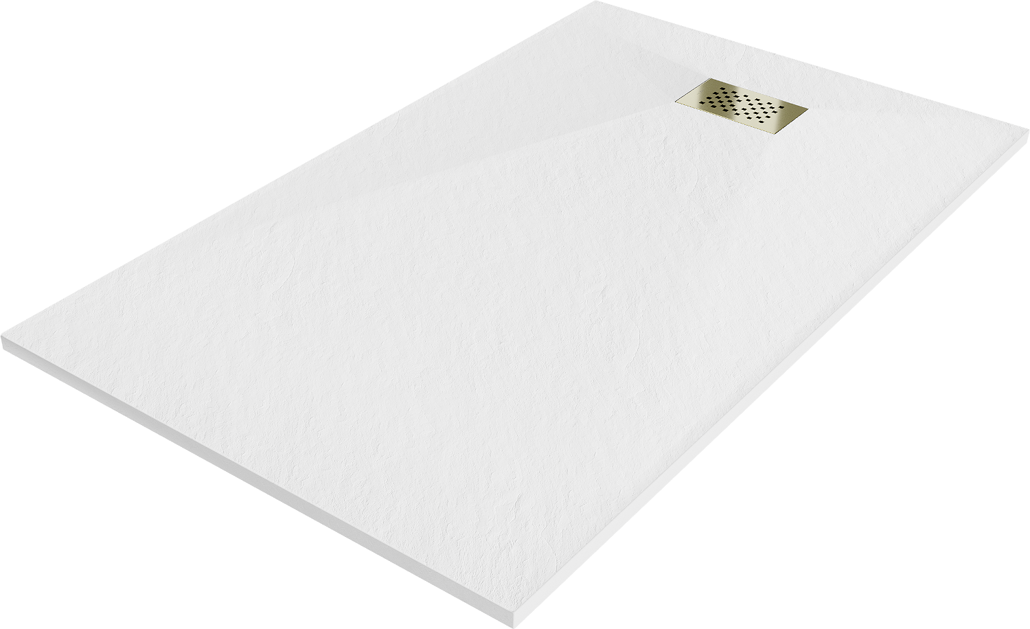 Mexen Hugo rechteckige Duschwanne SMC 140 x 80 cm, weiß, goldene Abdeckung - 42108014-G