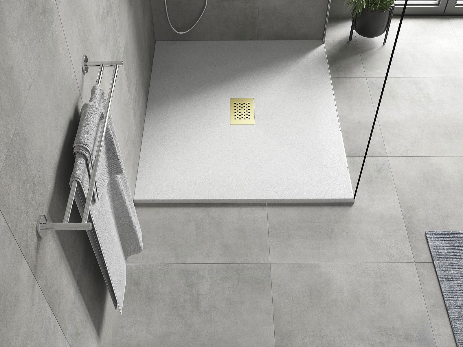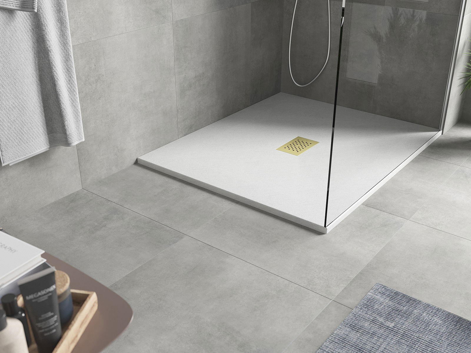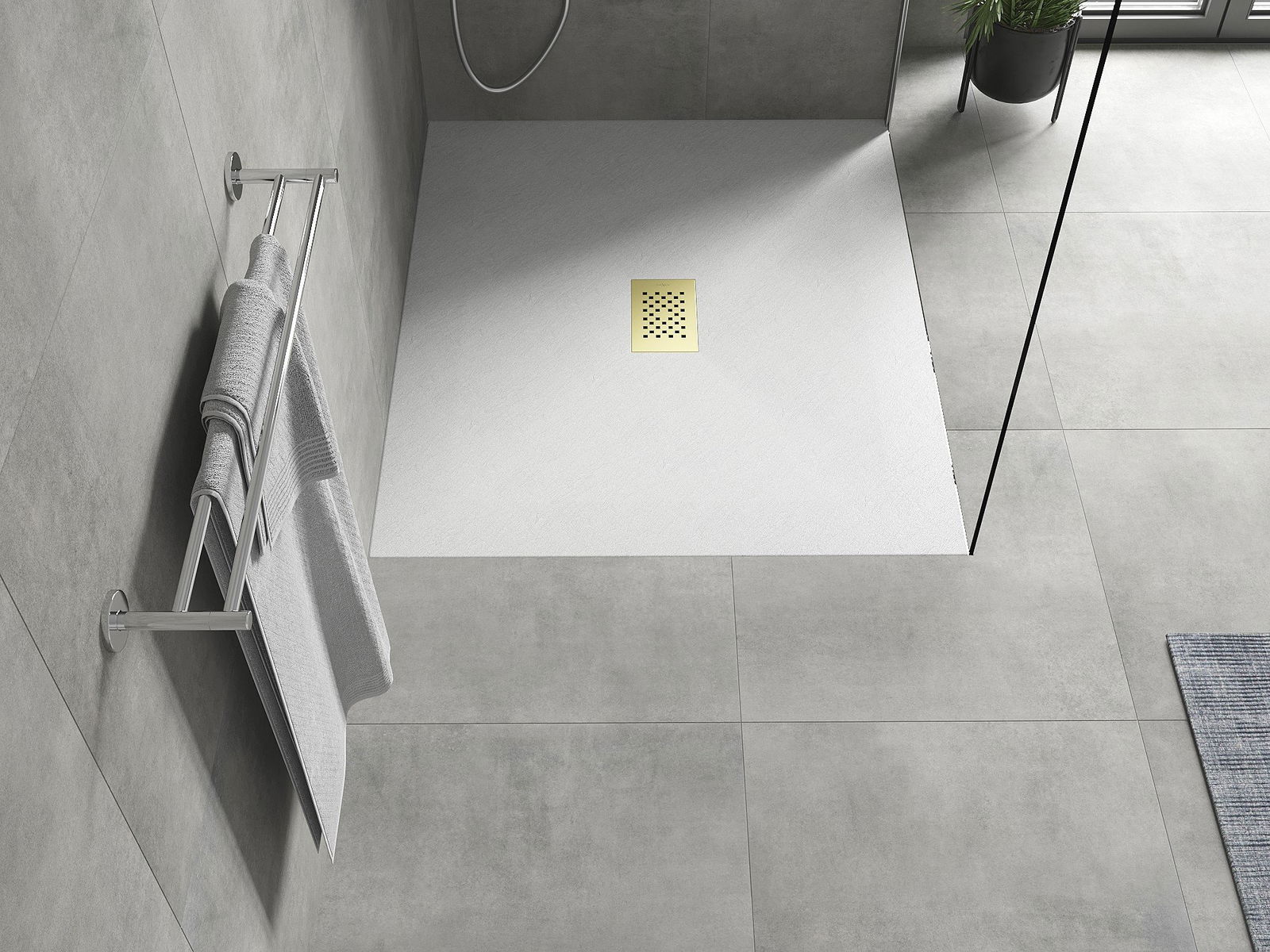 Mexen Hugo rechteckige Duschwanne SMC 130 x 100 cm, weiß, goldene Abdeckung - 42101013-G