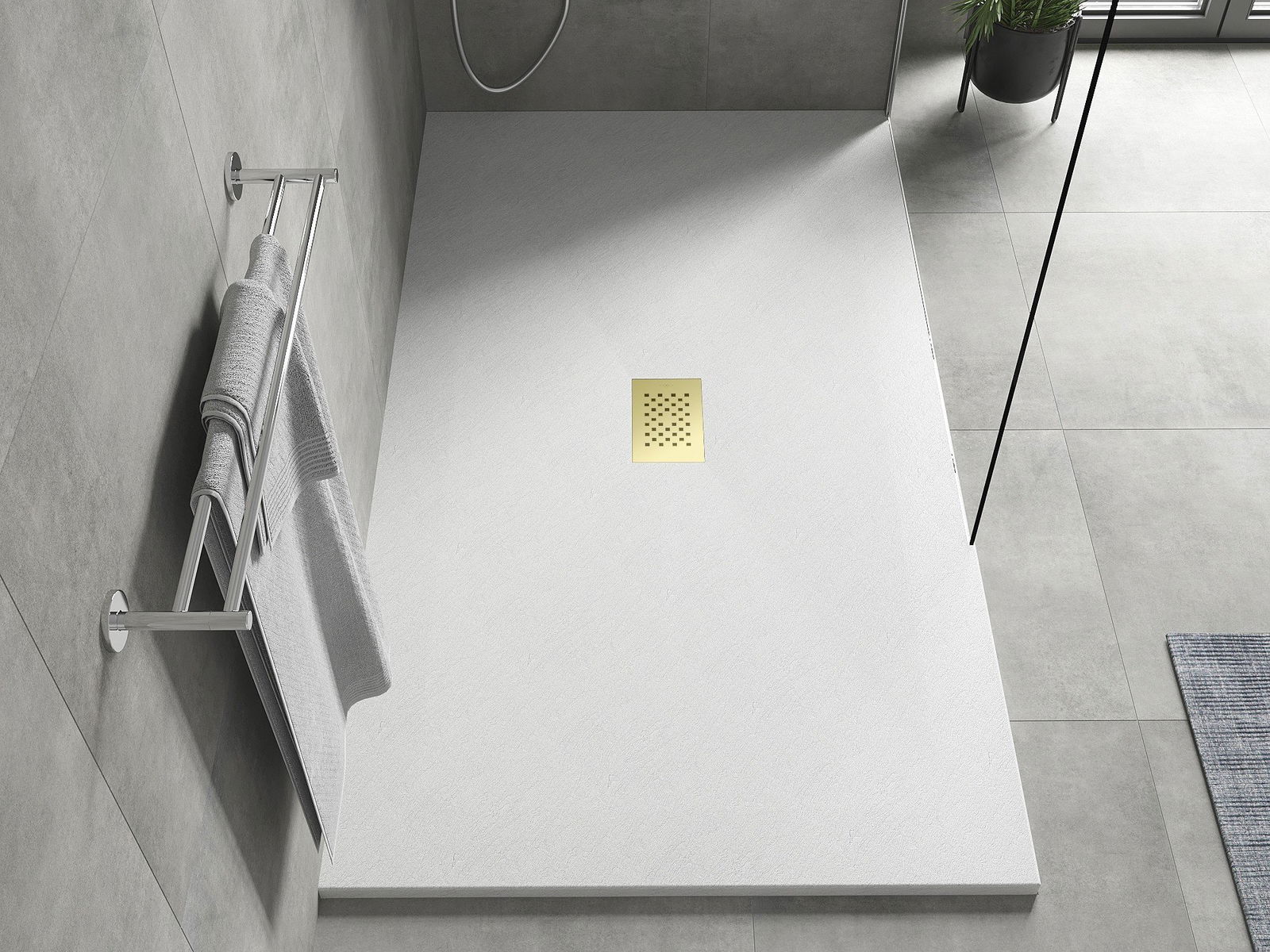 Mexen Hugo rechteckige Duschwanne SMC 170 x 100 cm, weiß, goldene Abdeckung - 42101017-G