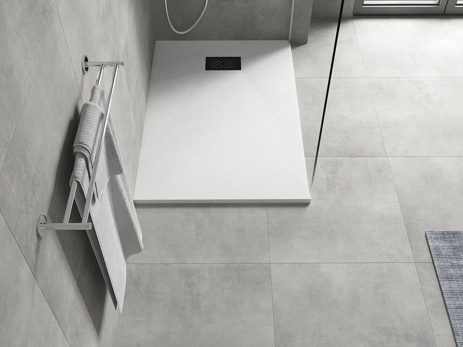 Die Oberfläche der Duschschale ähnelt einem Stein mit seiner Struktur. Es ist eine einzigartige Kombination aus natürlichen Aussehen mit einer modernen Innenanordnung. Es fügt Charakter hinzu, betont die Ästhetik und Eleganz des Badezimmerdekors und beeindruckt mit seiner Form.