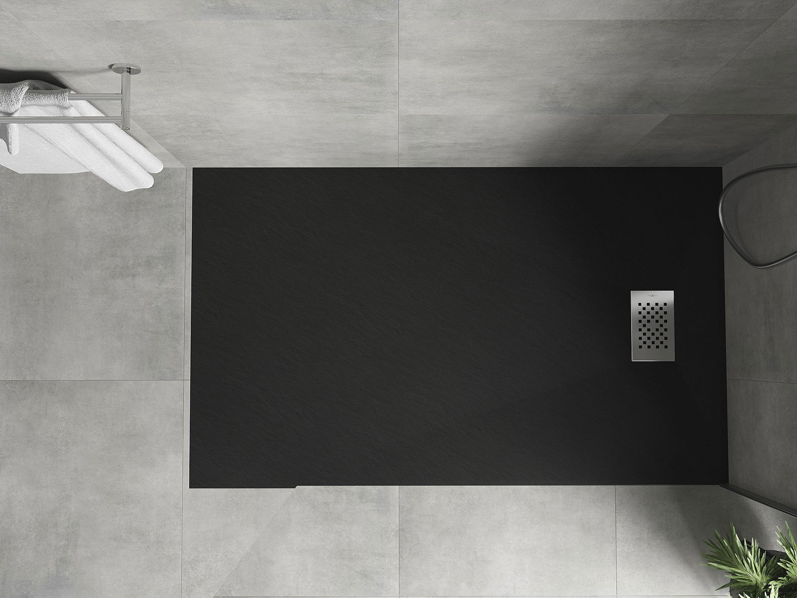 Mexen Hugo Duschwanne rechteckig SMC 140 x 80 cm, schwarz, Abdeckung Inox - 42708014-X