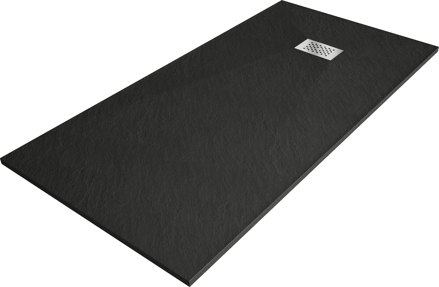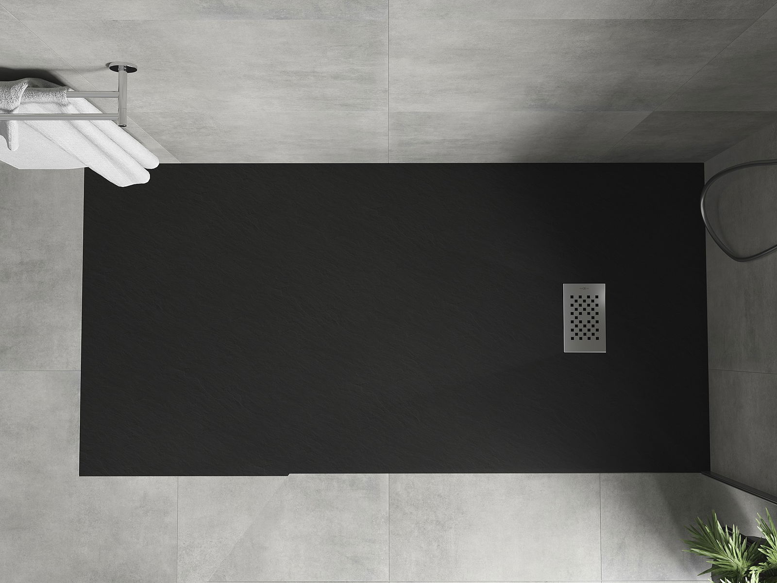 Mexen Hugo rechteckige Duschwanne SMC 170 x 80 cm, schwarz, Abdeckung aus Inox - 42708017-X