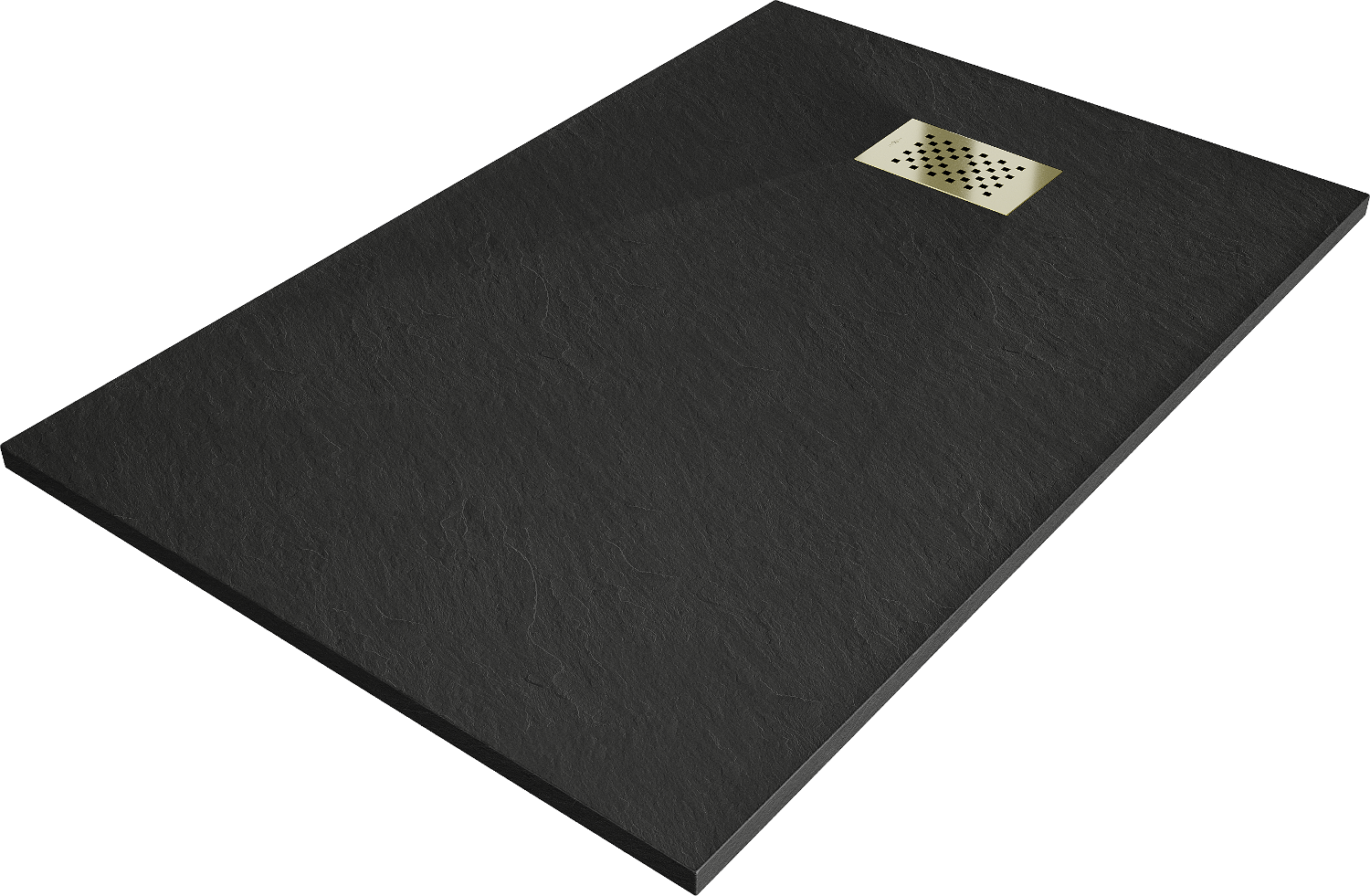 Mexen Hugo rechteckige Duschwanne SMC 100 x 70 cm, schwarz, Abdeckung gold - 42707010-G