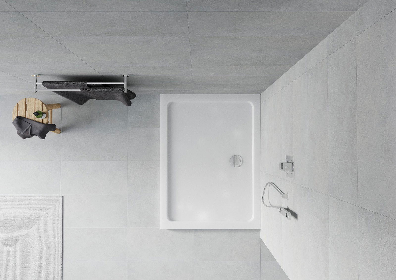 Die Duschschale wurde so entworfen, dass das Wasser frei in Richtung Abfluss fließen konnte. Es bietet eine schnelle und effektive Wasserentwässerung von der Oberfläche des Paddelbeckens, wodurch die Bildung von Pfützen verhindert und das Badezimmer überflutet wird.