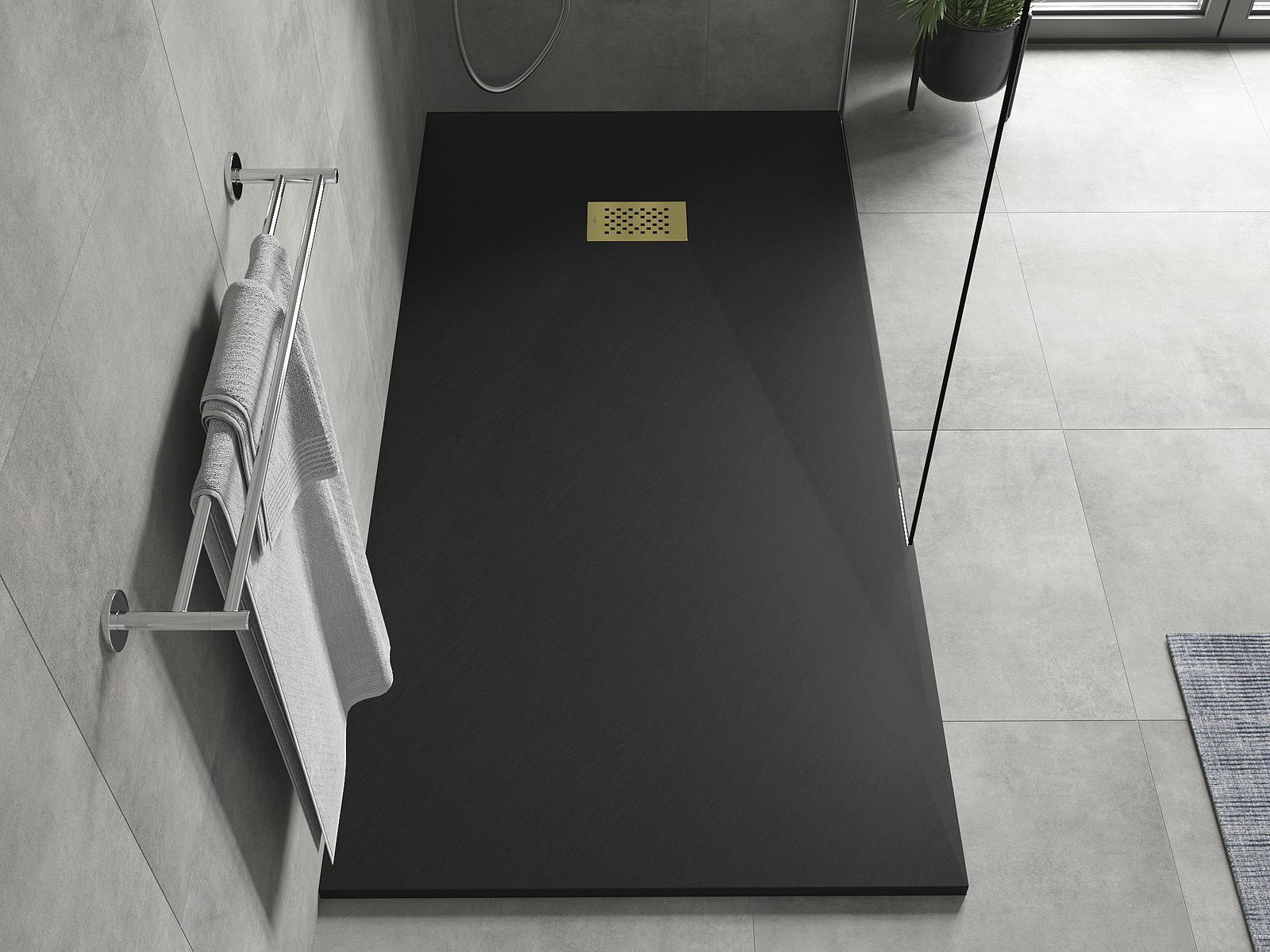 Mexen Hugo rechteckige SMC-Duschwanne 170 x 80 cm, schwarz, goldene Abdeckung - 42708017-G