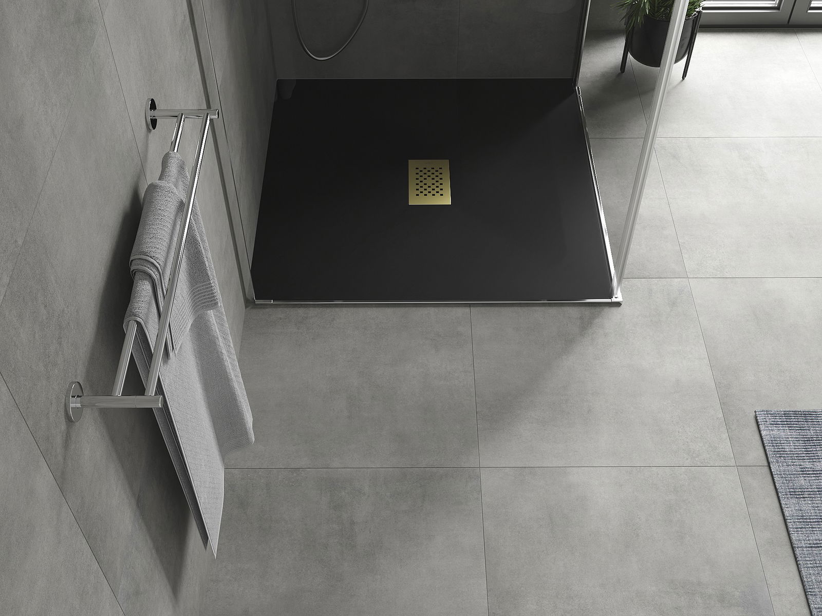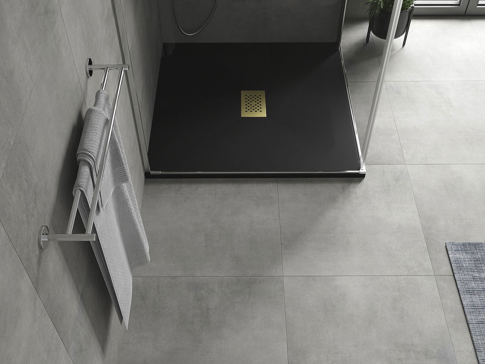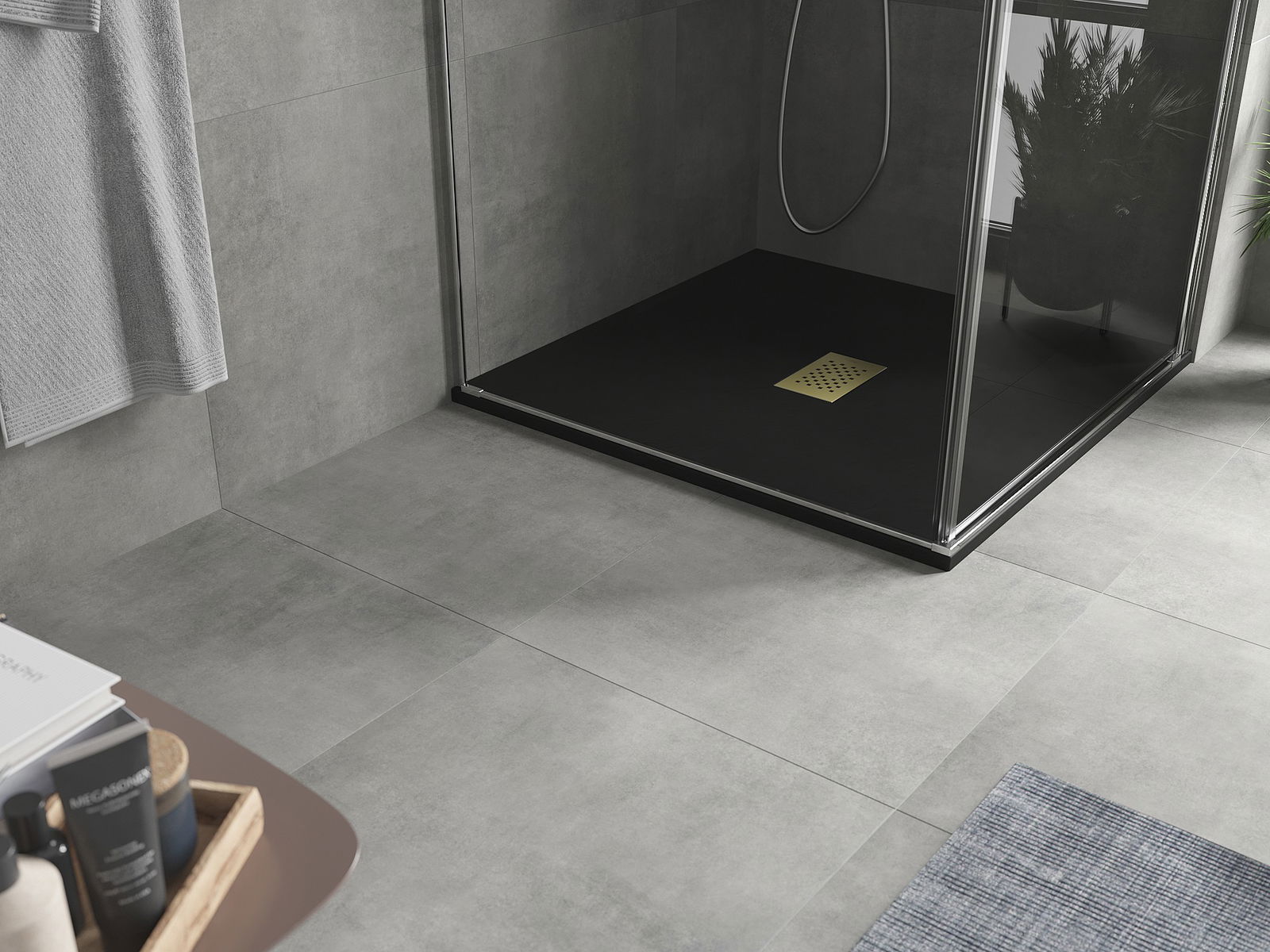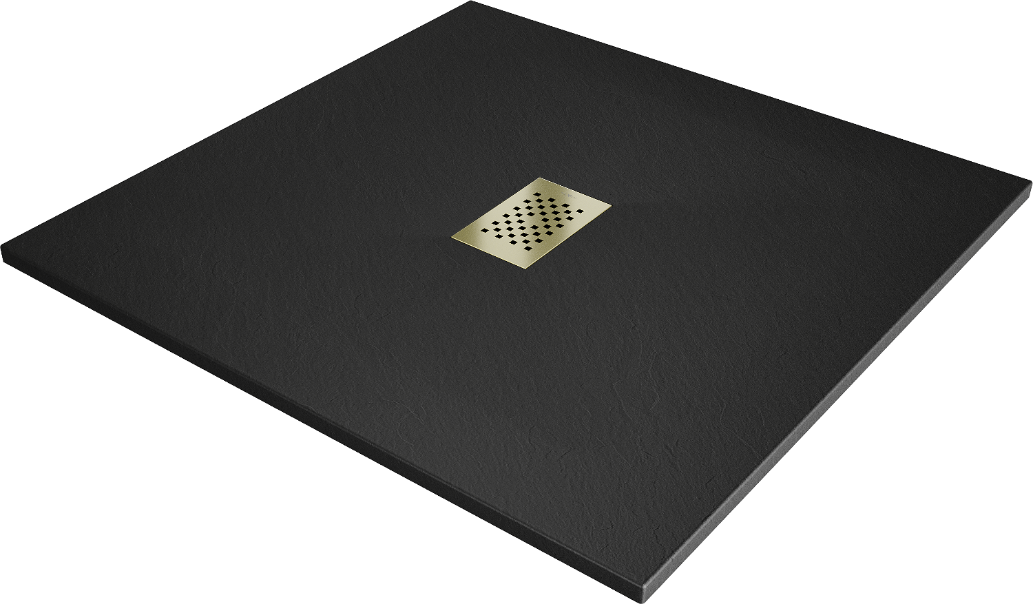 Mexen Hugo quadratische SMC Duschwanne 100 x 100 cm, schwarz, goldene Abdeckung - 42701010-G