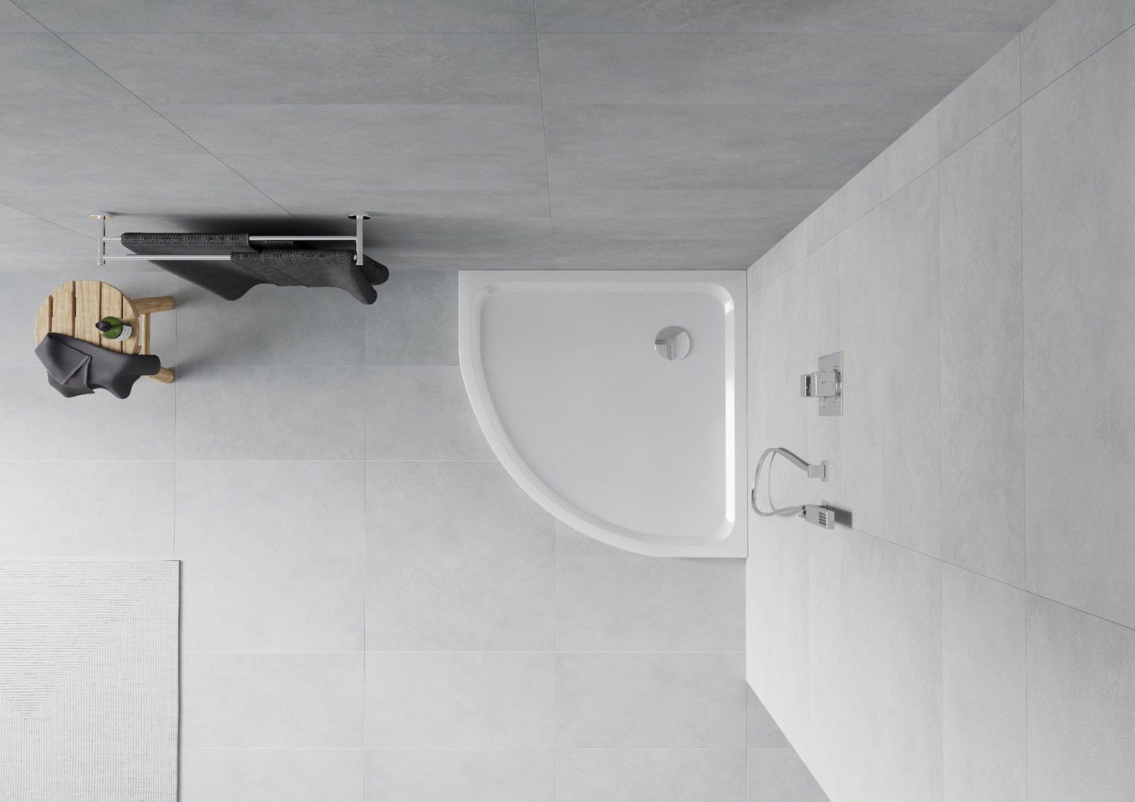 Die Duschschale wurde so entworfen, dass das Wasser frei in Richtung Abfluss fließen konnte. Es bietet eine schnelle und effektive Wasserentwässerung von der Oberfläche des Paddelbeckens, wodurch die Bildung von Pfützen verhindert und das Badezimmer überflutet wird.
