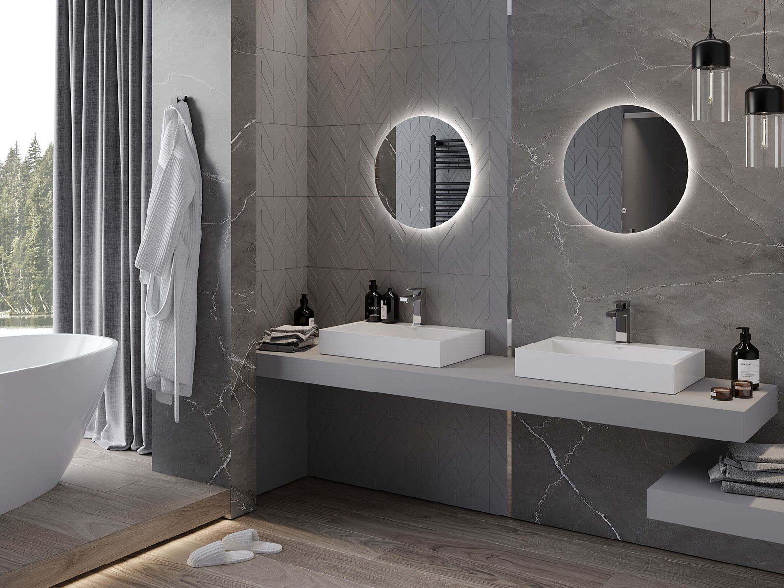 Die LED -Hintergrundbeleuchtung am Spiegel ist ein praktisches Element, das dank der Möglichkeit einer idealen Gesichtsbeleuchtung die tägliche Pflege erleichtert. Die Hintergrundbeleuchtung verleiht dem Badezimmer ein modernes Finish und betont sein elegantes Dekor.