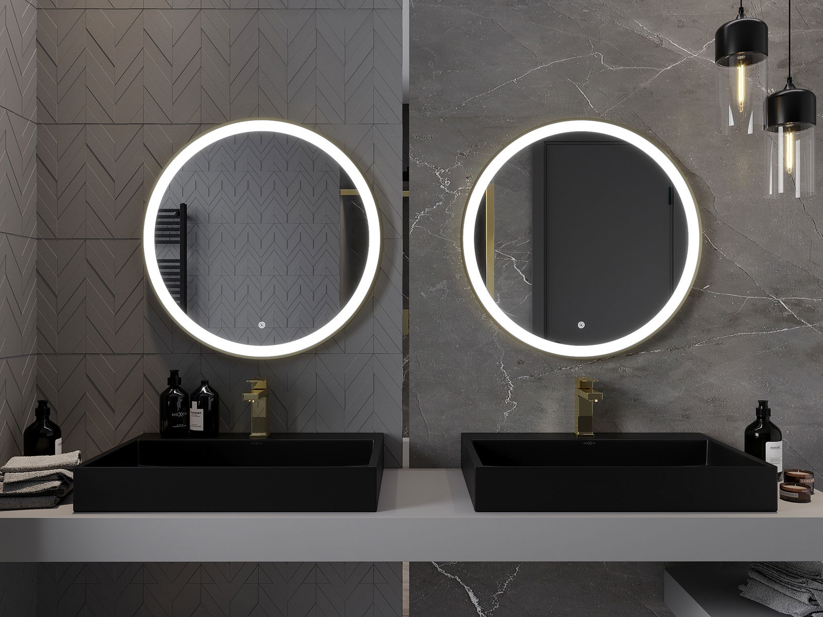 Der Spiegel ist mit kalter LED -Beleuchtung - 6000k ausgestattet. Es bietet eine intensive und klare Beleuchtung, mit der Sie auch die kleinsten Details bemerken können. Unterstützt perfekt tägliche Behandlungen mit Gesichtspflege.
