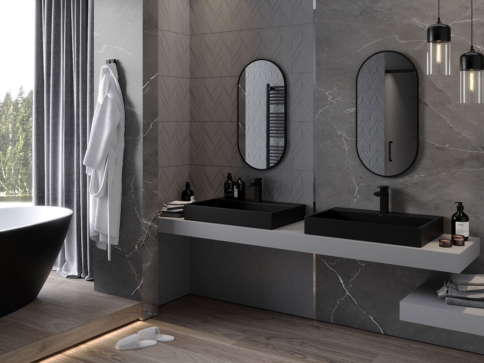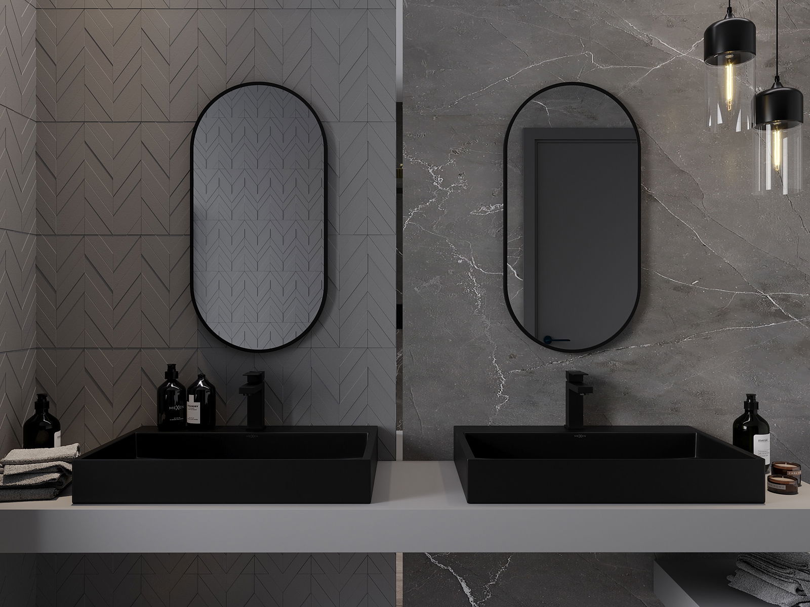 Mexen Loft ovaler Badezimmerspiegel 80 x 40 cm, schwarzer Rahmen - 9851-080-040-000-70