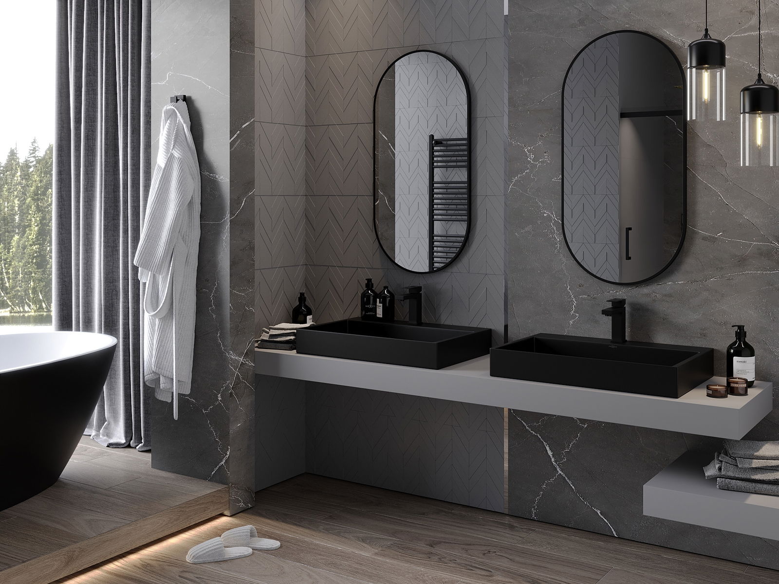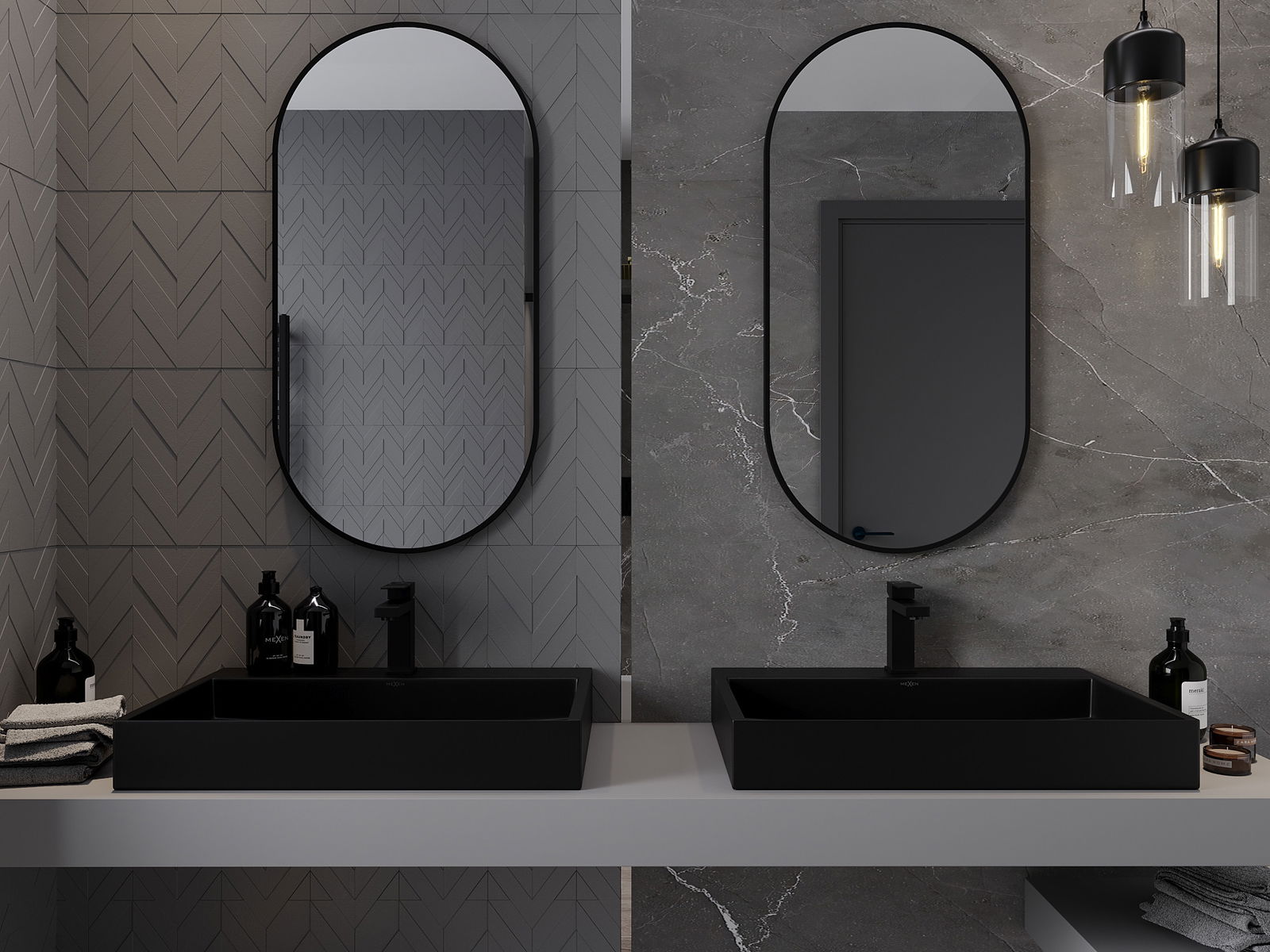 Mexen Loft ovaler Badezimmerspiegel 100 x 50 cm, schwarzer Rahmen - 9851-100-050-000-70