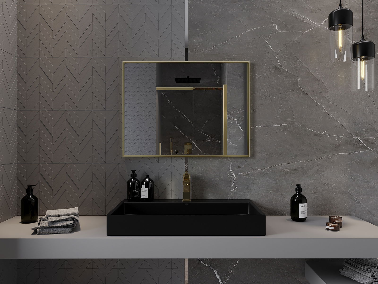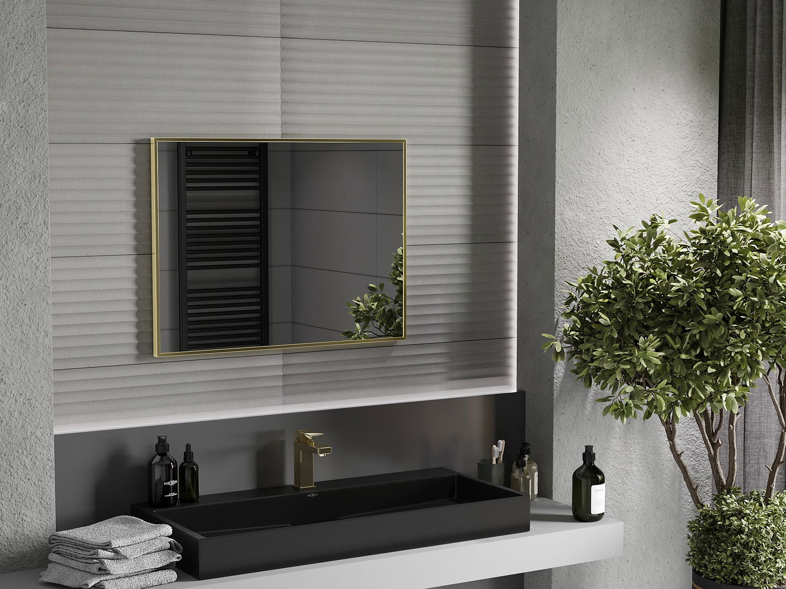 Mexen Loft rechteckiger Badezimmerspiegel 80 x 60 cm, goldener Rahmen - 9852-080-060-000-50