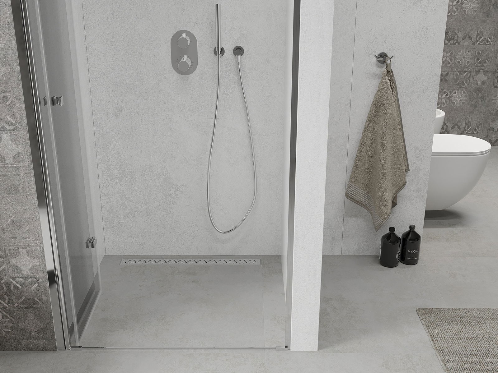 Abhängig von Ihren Bedürfnissen kann das Produkt sowohl auf der Duschschale als auch direkt auf dem Boden montiert werden. Mit der universellen Montagemethode können Sie das Produkt an verschiedene Arten von Badezimmern anpassen und Raum konfigurieren.