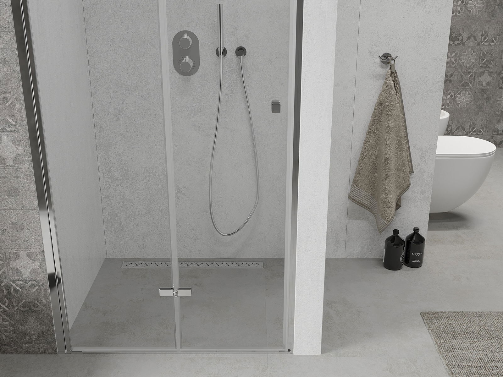 Durch die Möglichkeit, die Tür sowohl außerhalb als auch innen zu falten, können Sie mehr Platz erhalten, wenn Sie die Dusche nicht verwenden. Es ist eine ideale Lösung für kleinere Badezimmer, maximal mit der verfügbaren Oberfläche.
