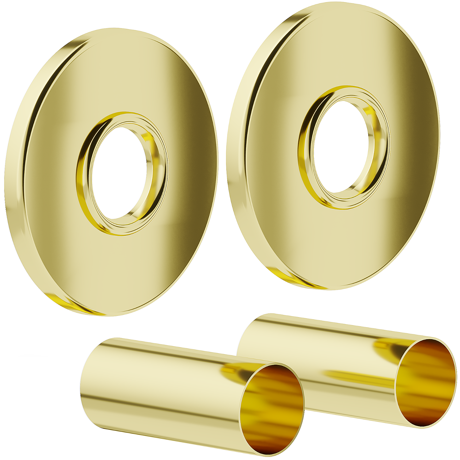 Das Verkleidungsset besteht aus zwei einzelnen Rosetten und Hülsen, die für die Montage von Thermostatsets und Heizkörperventilen ausgelegt sind.