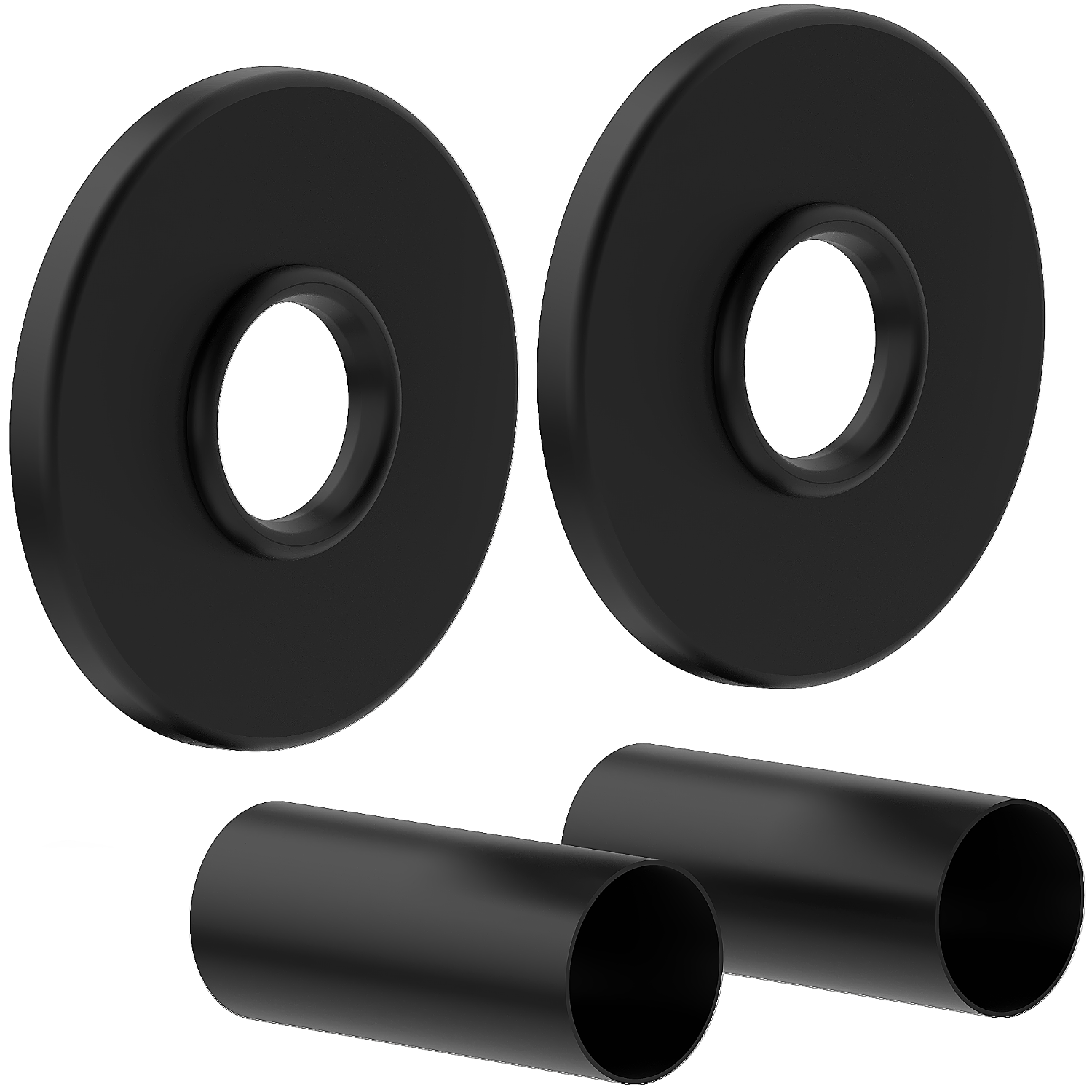 Das Abdeckset besteht aus zwei einzelnen Rosetten und Muffen, die zur Installation von Thermostatsets und Heizkörperventilen gedacht sind
