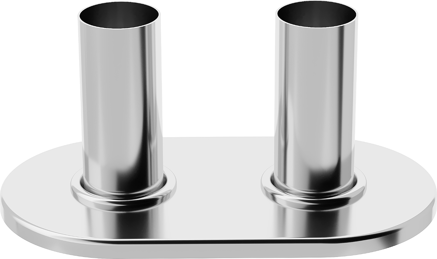 Das Verkleidungsset besteht aus einer doppelten Rosette und zwei Hülsen zur Montage von Thermostat-Sets und Heizkörperventilen