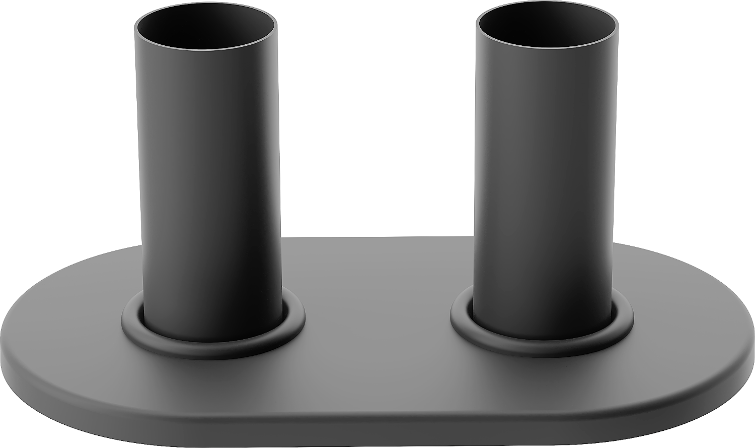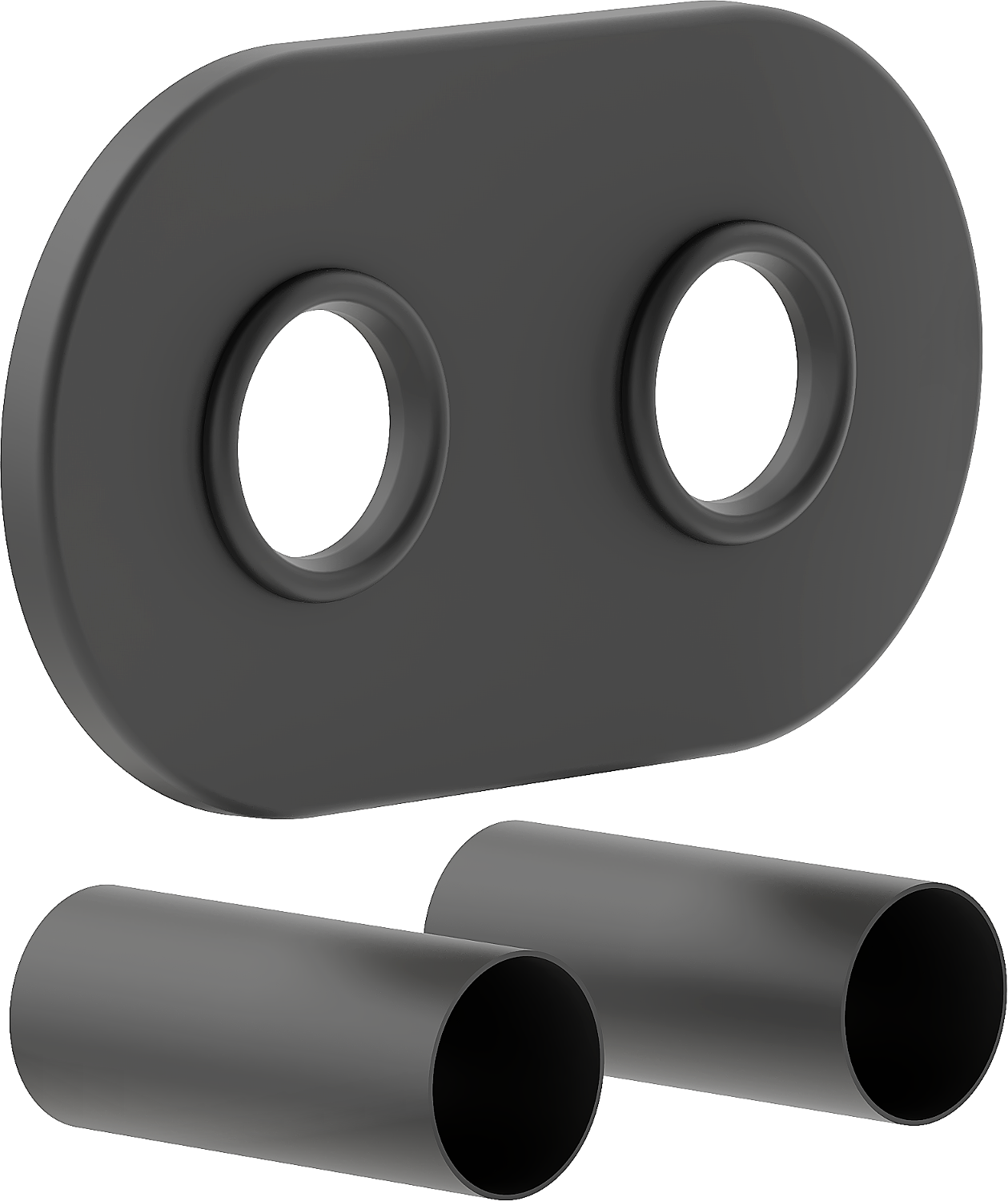 Das Abdeckset besteht aus einer Doppelrosette und zwei Buchsen zur Montage von Thermostat-Sets und Heizkörperventilen