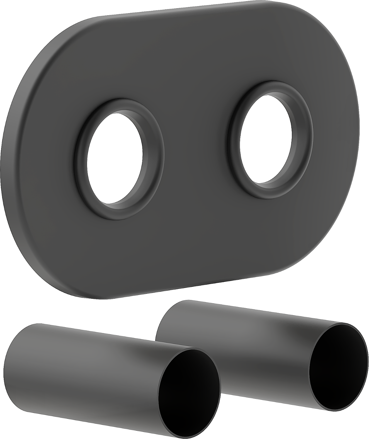 Das Abdeckset besteht aus einer Doppelrosette und zwei Buchsen zur Montage von Thermostat-Sets und Heizkörperventilen