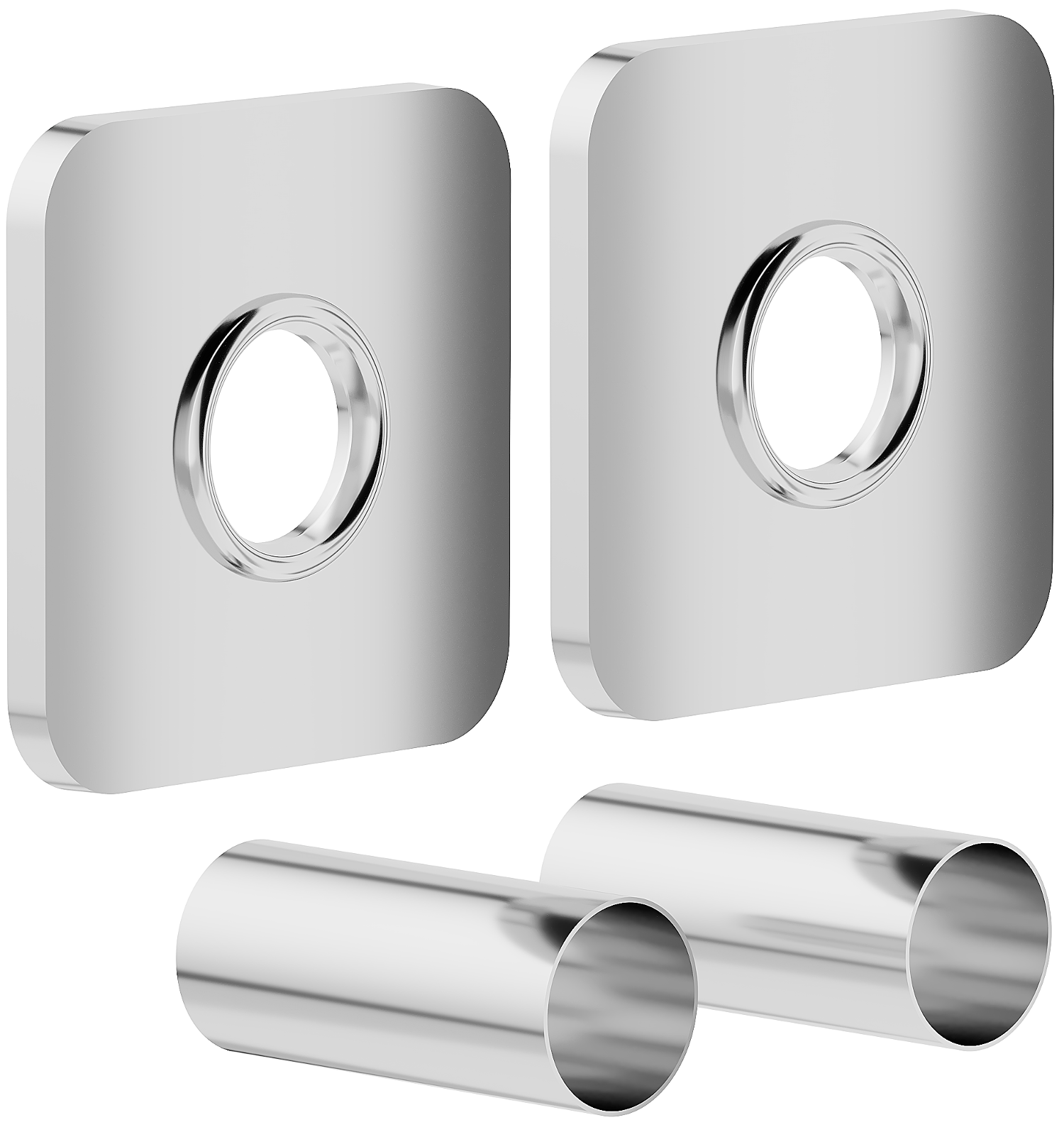Das Verkleidungsset besteht aus zwei einzelnen Rosetten und Hülsen, die für die Montage von Thermostatsets und Heizkörperventilen vorgesehen sind