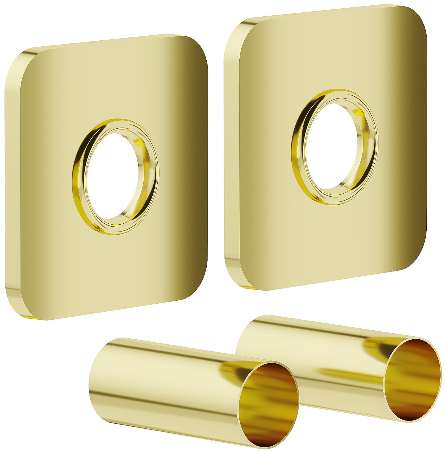 Das Verblendungsset besteht aus zwei einzelnen Rosetten und Hülsen zur Montage von Thermostatsets und Heizkörperventilen