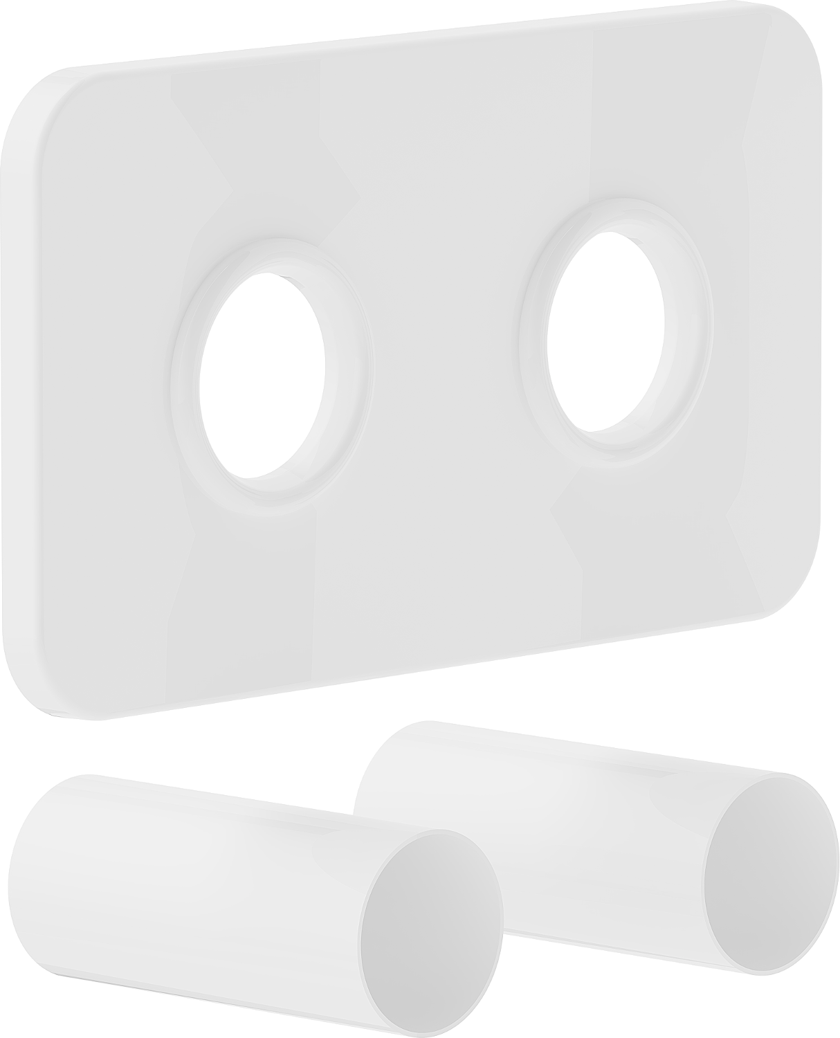 Das Verkleidungsset besteht aus einer Doppelrosette und zwei Hülsen zur Montage von Thermostatsätzen und Heizkörperventilen