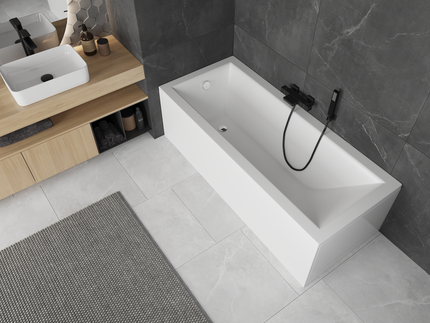 Die Verwendung von Acryl im Badezimmer ist eine sehr praktische Lösung. Das Acryl hält die Wassertemperatur gut und verhindert, dass sie schnell abkühlt. Es hat auch akustische Eigenschaften, dank dessen, dass es das Geräusch im Badezimmer reduziert.