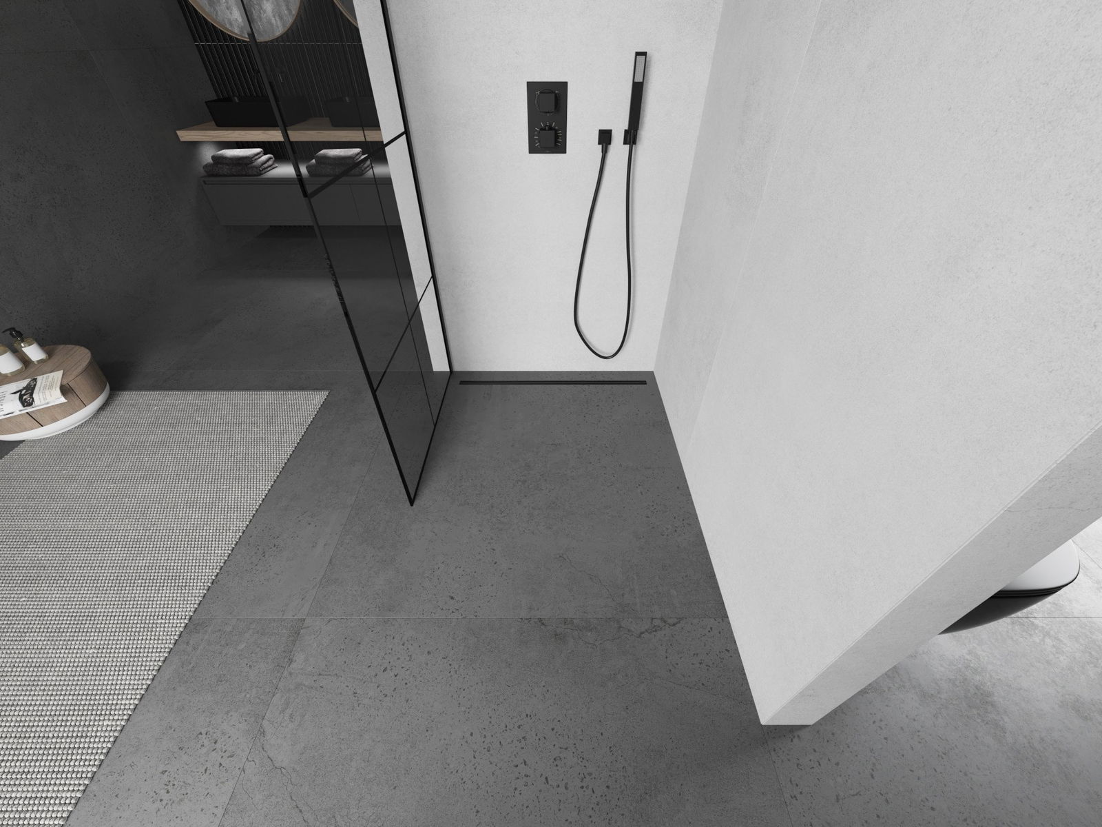 Abhängig von Ihren Bedürfnissen kann das Produkt sowohl auf der Duschschale als auch direkt auf dem Boden montiert werden. Mit der universellen Montagemethode können Sie das Produkt an verschiedene Arten von Badezimmern anpassen und Raum konfigurieren.