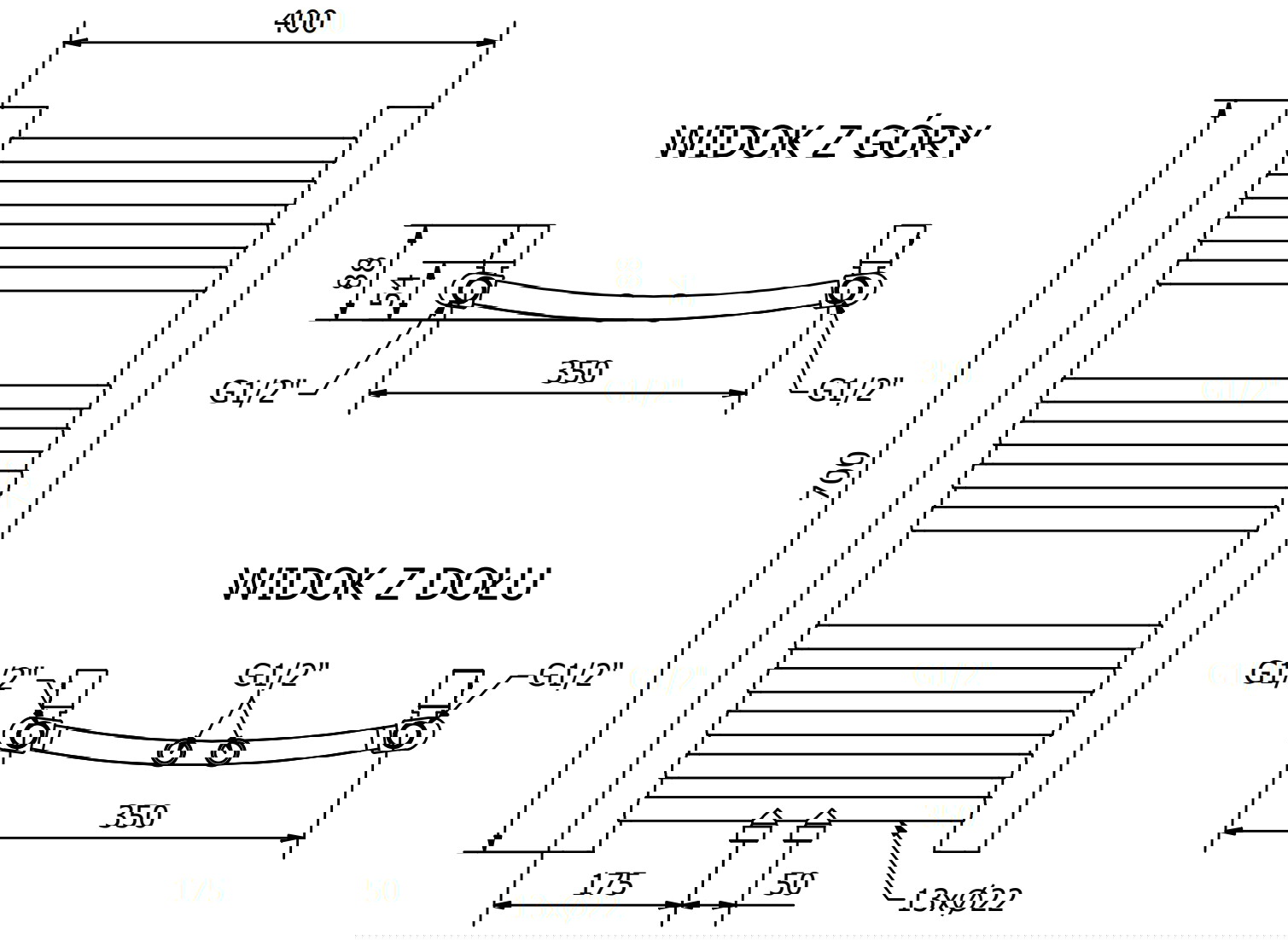 - 4xG ½″ von oben und unten rechts oder links