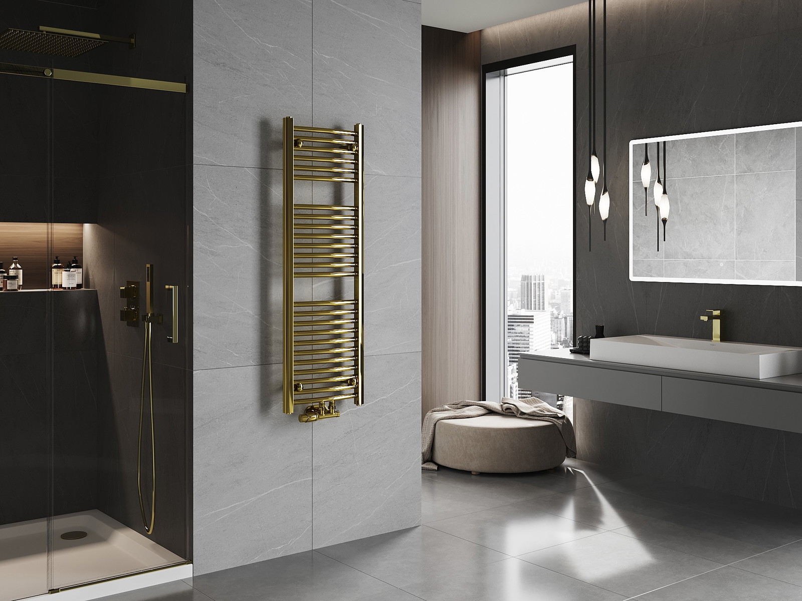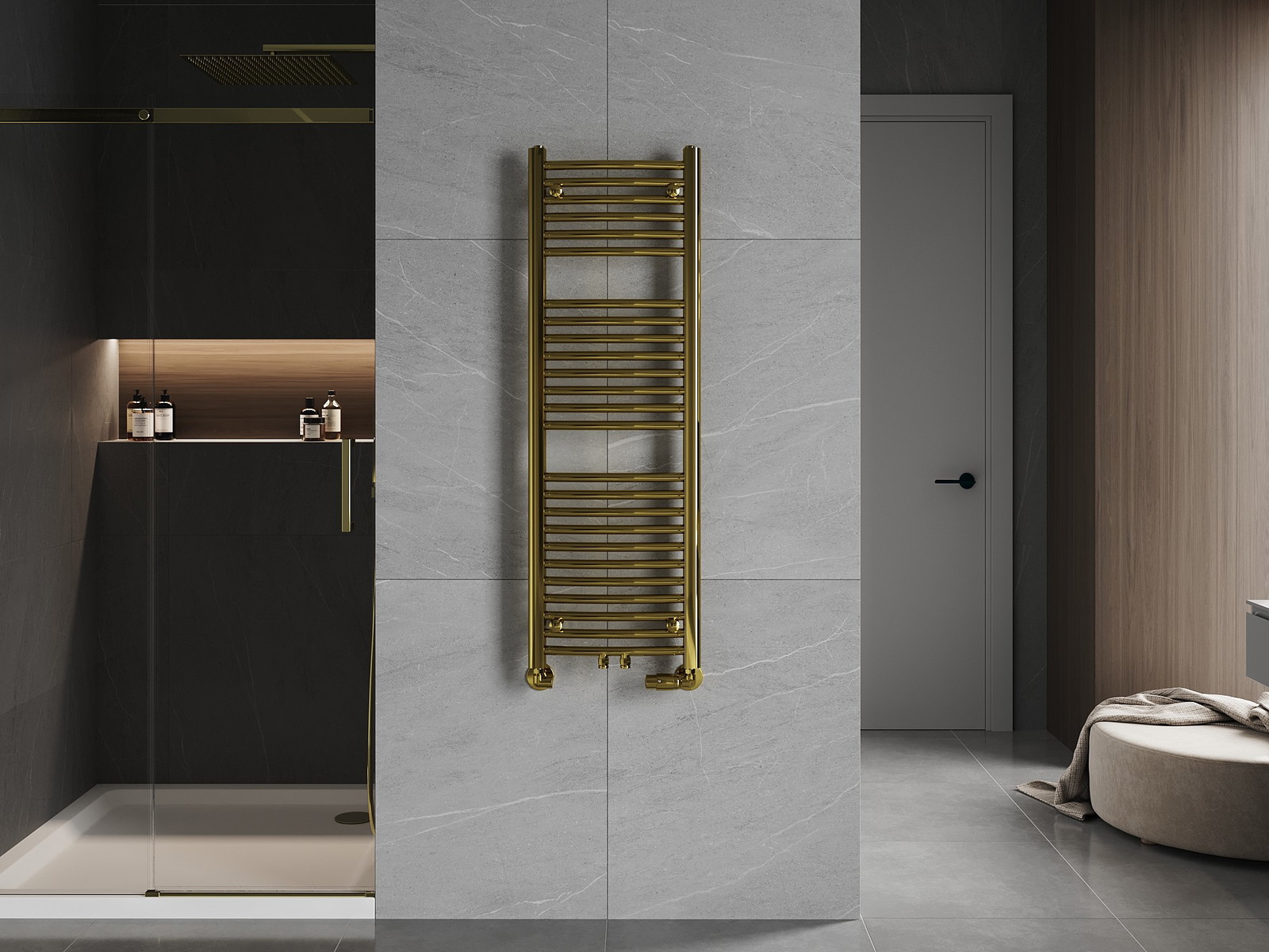 Der Mexen Ares Badezimmerheizkörper vereint Eleganz und Funktionalität, bietet modernes Design und exzellente Heizleistung. Die Maße 1200 x 400 mm ermöglichen eine effektive Raumausnutzung, und die Heizleistung von 349 W sorgt für optimale Wärme. Einfach zu installieren dank verschiedener Anschlussoptionen, während der hochwertige Stahl und die goldene Farbe jedem Badezimmer Stil verleihen. Eine langlebige, korrosionsbeständige Lackierung garantiert Langlebigkeit, und die Möglichkeit, eine Heizpatrone zu montieren, erhöht die Funktionalität des Produkts.