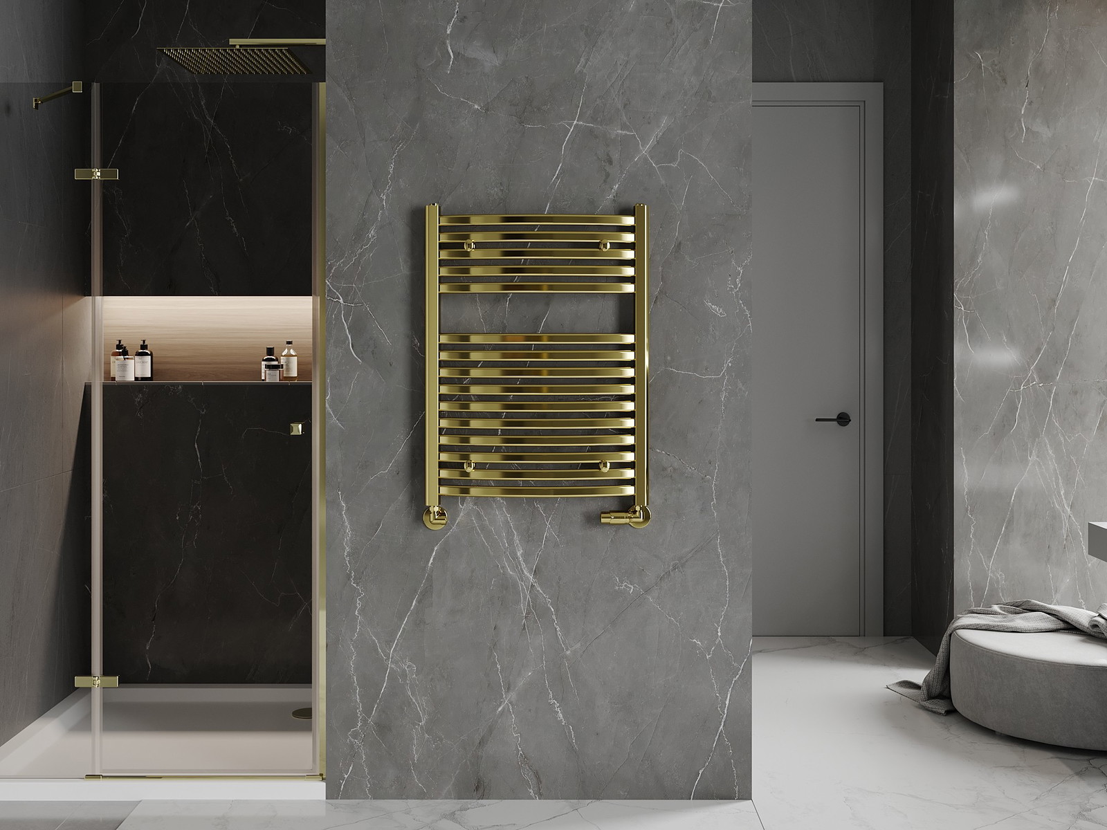 Der Badezimmerheizkörper Mexen Helios ist die perfekte Wahl für jedes Badezimmer. Er besticht durch seine elegante goldene Oberfläche, die sowohl zu modernen als auch klassischen Inneneinrichtungen passt. Mit den Maßen 800 x 600 mm und einer Leistung von 354 W sorgt er für optimale Wärme. Gefertigt aus Stahl, ist er dank einer langlebigen Lackbeschichtung korrosionsbeständig. Seine maximale Arbeitstemperatur beträgt 95 °C und der Betriebsdruck liegt bei 0,6 Mpa. Die Möglichkeit zur Montage einer Heizpatrone und praktische Abmessungen machen die Installation extrem einfach. Im Set sind auch die notwendigen Montagezubehörteile enthalten.
