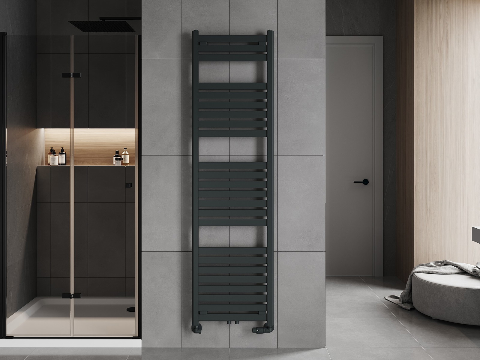 Mexen Uran ist ein moderner Badezimmerheizkörper mit den Maßen 1800 x 500 mm, der eine beeindruckende Heizleistung von 801 W bietet. Dank der Verwendung von Stahl und der hochwertigen Lackbeschichtung ist er korrosionsbeständig und langlebig. Das klassische Anthrazit RAL 7016 harmoniert mit jeder Badezimmergestaltung. Der Heizkörper ist für den Betrieb bei Temperaturen bis 95°C und einem maximalen Druck von 0,4 Mpa ausgelegt. Mit der Möglichkeit zur Installation eines Heizstabs und flexiblen Anschlüssen ist Mexen Uran die ideale Lösung für anspruchsvolle Nutzer.