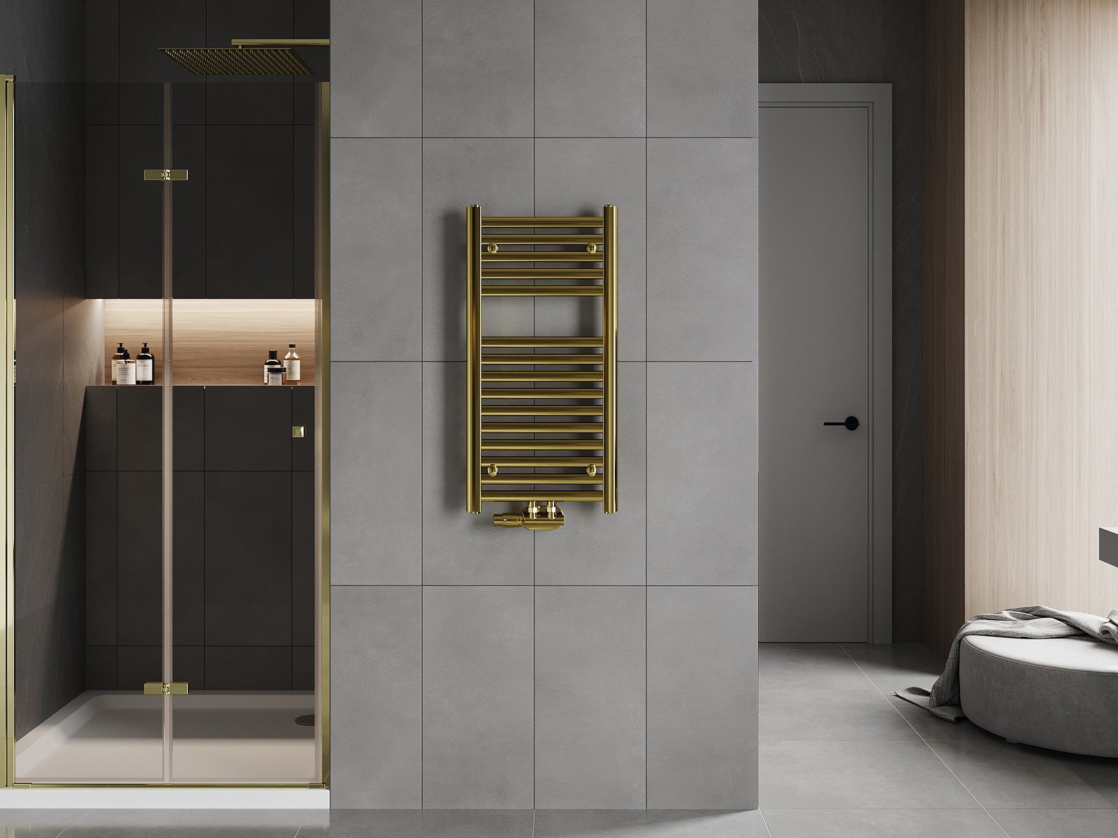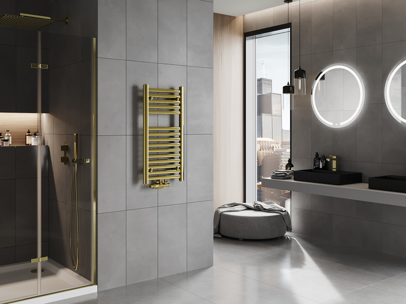 Mexen Hades ist ein eleganter Badezimmerheizkörper mit den Maßen 800 x 400 mm in der Farbe Gold, der sich perfekt in moderne Innenräume einfügt. Hergestellt aus Stahl und ausgestattet mit einer hochwertigen, korrosionsbeständigen Lackbeschichtung, garantiert er Langlebigkeit und Ästhetik. Seine Heizleistung beträgt 253 W, und die Möglichkeit, ein Heizelement anzuschließen, erhöht die Funktionalität des Geräts. Mexen Hades ist nicht nur eine effiziente, sondern auch stilvolle Lösung für jedes Badezimmer. Enthält Montageset und Entlüfter.