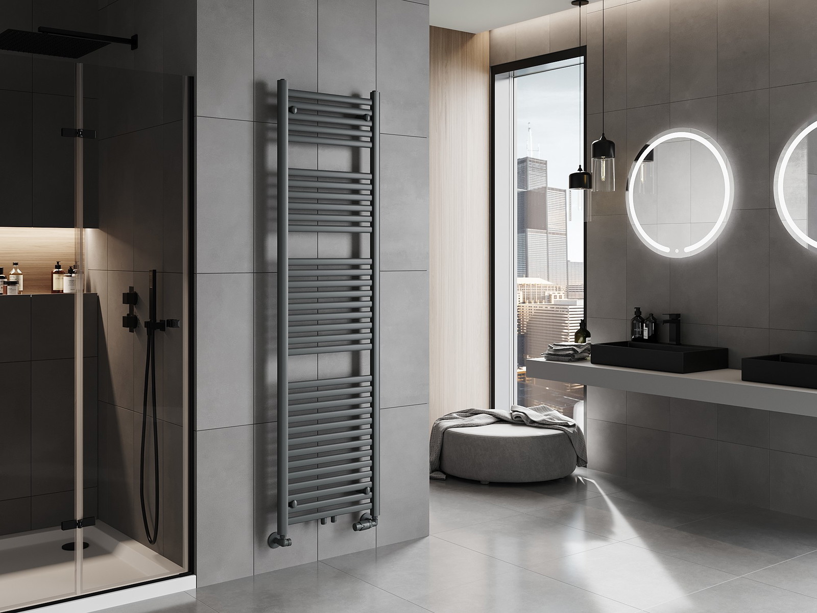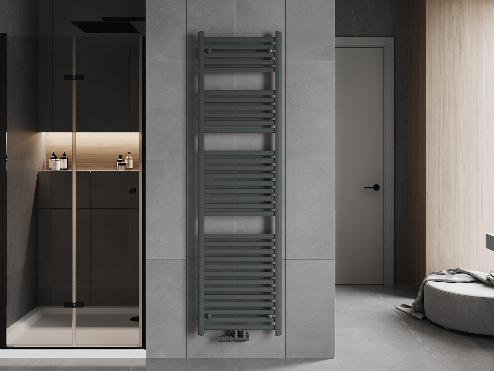 Mexen Hades ist ein moderner Badezimmerheizkörper mit den Maßen 1800 x 500 mm, 854 W, der sich perfekt für jeden Raum eignet. Seine anthrazitfarbene Farbe (RAL 7016) verleiht Eleganz, und die Stahlkonstruktion sorgt für Langlebigkeit. Dank der Brandreaktion der Klasse A1 und der hohen Korrosionsbeständigkeit ist er sicher im Gebrauch. Der Heizkörper bietet verschiedene Anschlussmöglichkeiten, darunter einen unteren von 45 cm und einen mittleren von 5 cm, sowie die Möglichkeit zur Montage eines Heizstabs. Das Set enthält alle notwendigen Montageteile, was die Installation erleichtert.