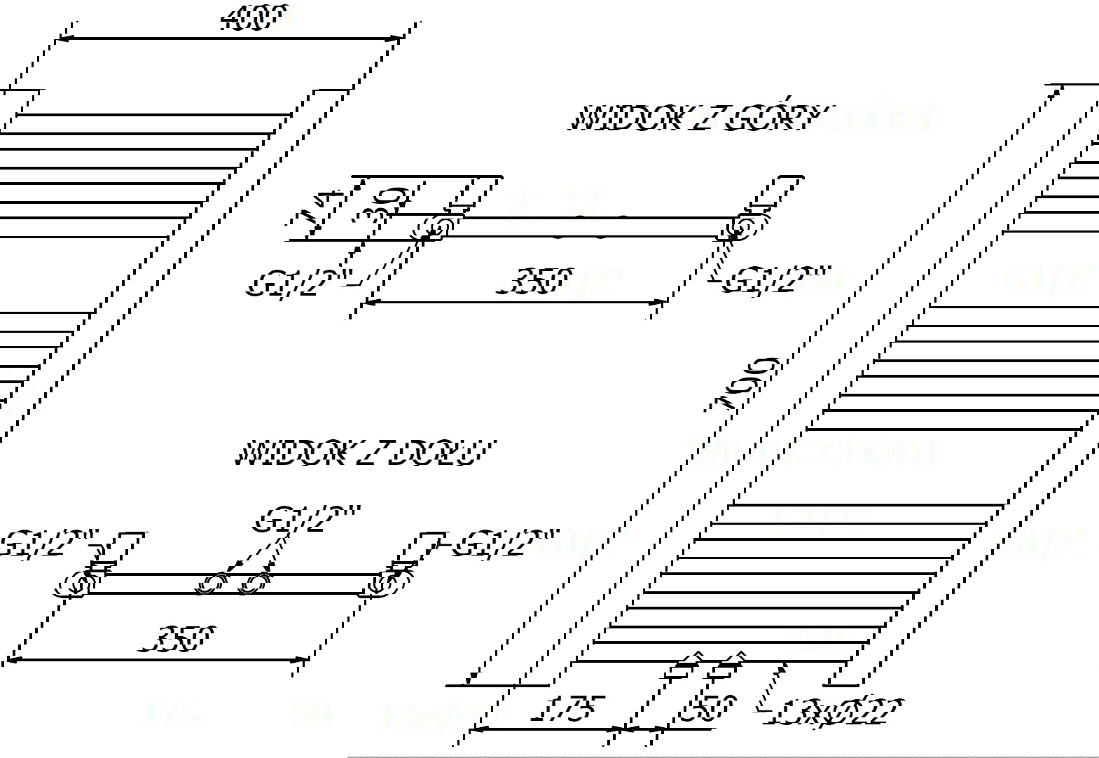 - 4xG ½″ von oben und unten an der rechten oder linken Seite